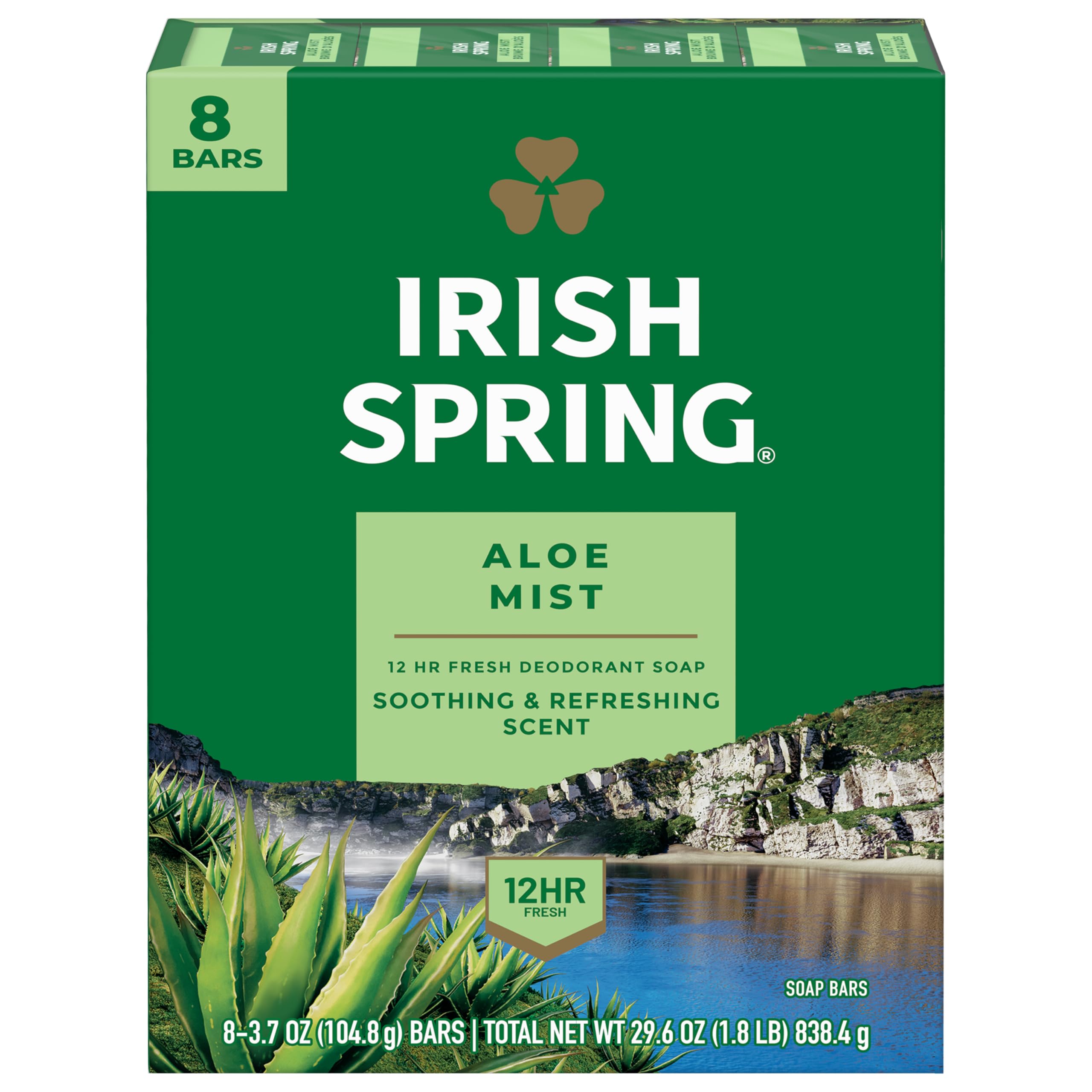 Irish Spring Aloe Mist Deodorant Bar Soap for Men, 12 Hour Fresh Deodorant Soap, 3.7 oz Bar (8 Pack)