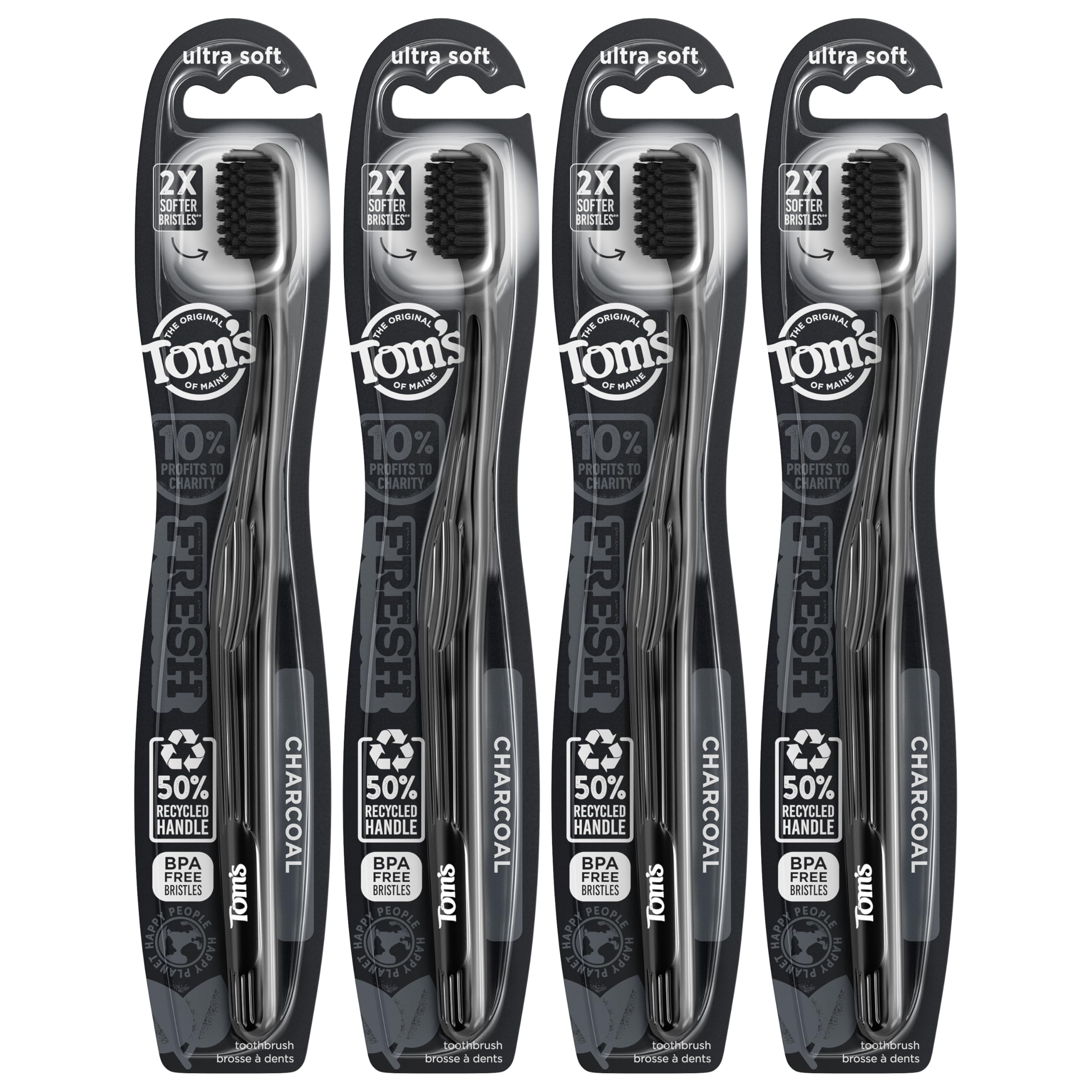 Tom's Of Maine Gentle Charcoal Toothbrush, Soft, 4-Pack (Packaging May Vary)