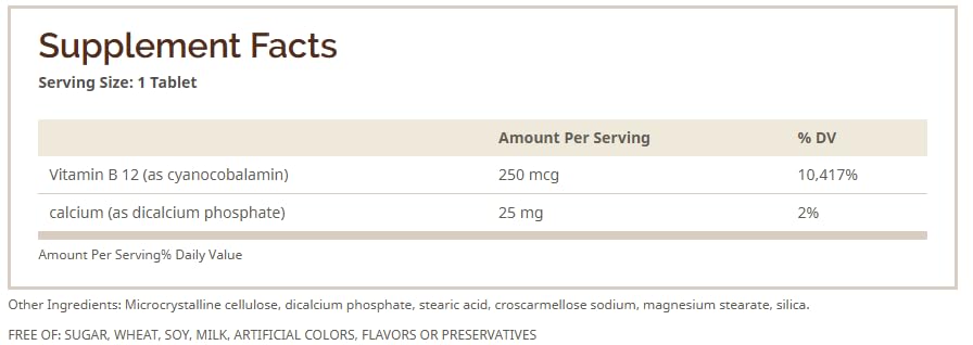Vitamin B-12 TABS 250 MCG WMILL Size: 100