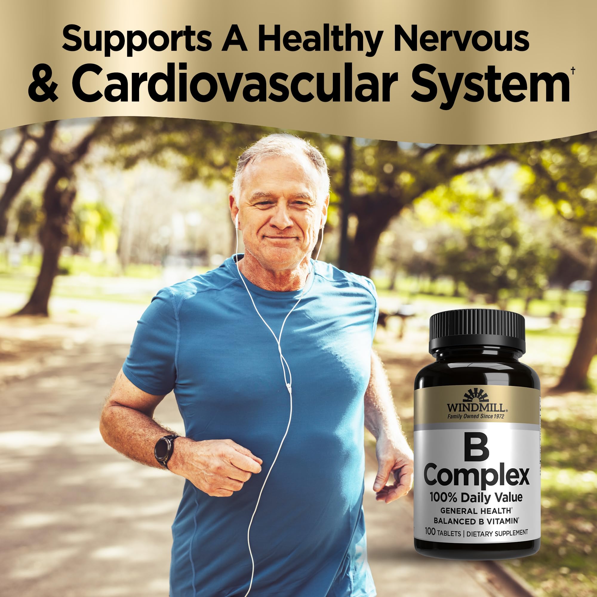 Windmill Natural Vitamins B Complex (100% Daily Value), Boost Energy Production and Promote Metabolism, 100 Tablets, 100 Servings