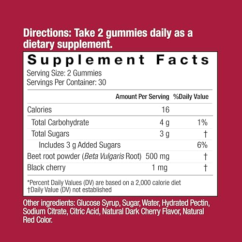 Beets have become more popular than ever these days thanks to their ability to support circulation via increased levels of nitric oxide in the body. Nitric oxide has been shown to help promote cardiovascular health and support healthy circulation, and Country Farms Bountiful Beets Gummies help provide the nitrates that your body needs to make nitric oxide. Country Farms Bountiful Beets Gummies also promote natural energy and endurance, which may help keep you active and feeling more energized and alive. For people on the go looking to support health and vitality Country Farms Bountiful Beets Gummies bring the incredible boosting power of beets to life in a convenient, delicious gummy. Enjoy!