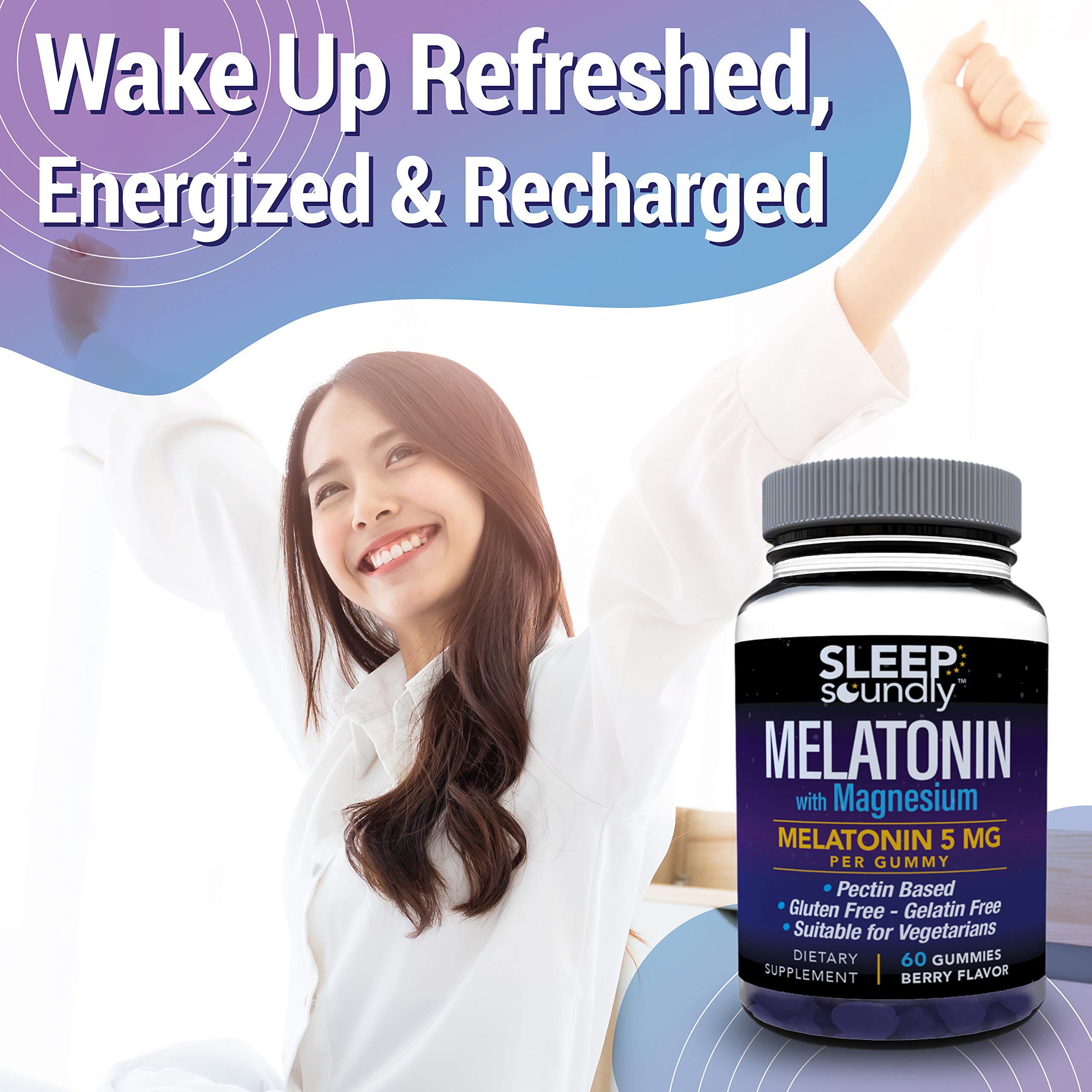Sleep Soundly Melatonin and Magnesium Gummies, Melatonin 5 Mg, Gluten Free - Gelatin Free, 60 Gummies, Purple, Berry, 60 Count