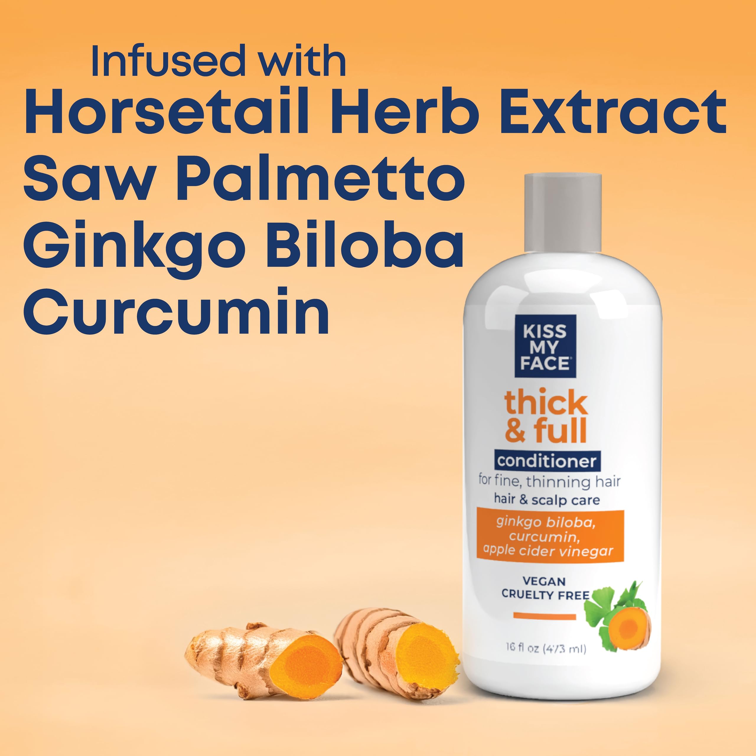 Kiss My Face Thick & Full Conditioner, For Fine and Thinning Hair, Hair and Scalp Care, Ginkgo Biloba and Curcumin, Vegan and Cruelty Free, 16 Fl Oz