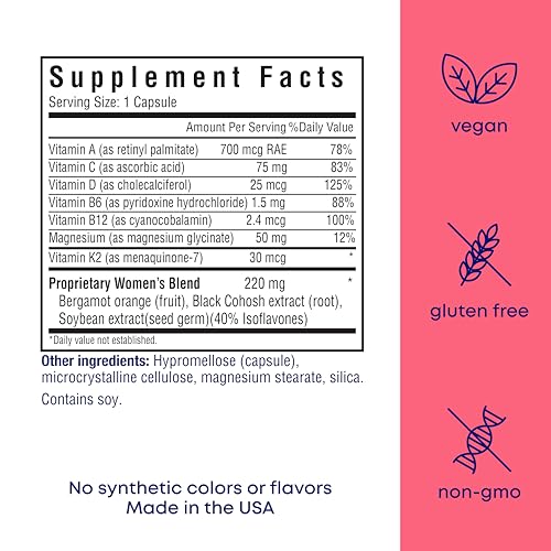 Her Own Menoprim, Menopause Support, Female Hormonal Balance Capsules for Night Sweats, Hot Flashes & Mood Swing Support, Bergamot Orange & Black Cohosh Root, 60 Capsules