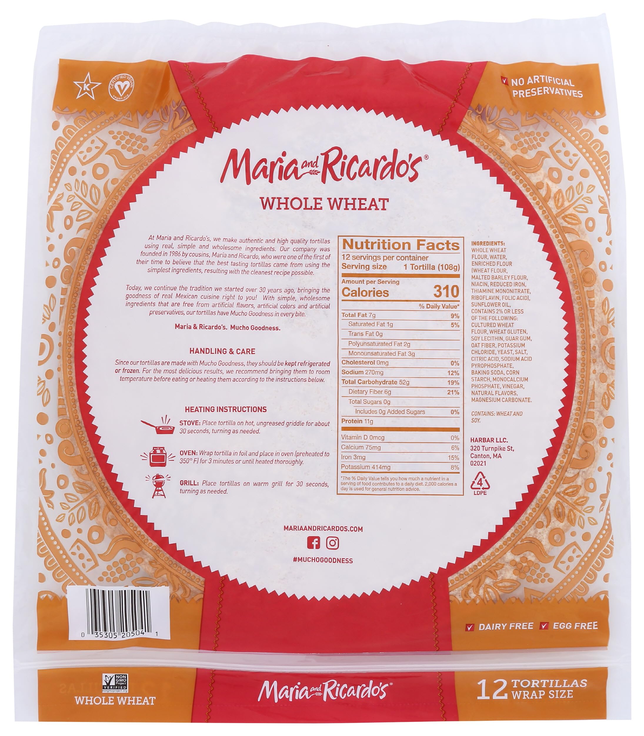 Maria & Ricardos Tortilla 1In Whole wheat Organic, 3.74 oz