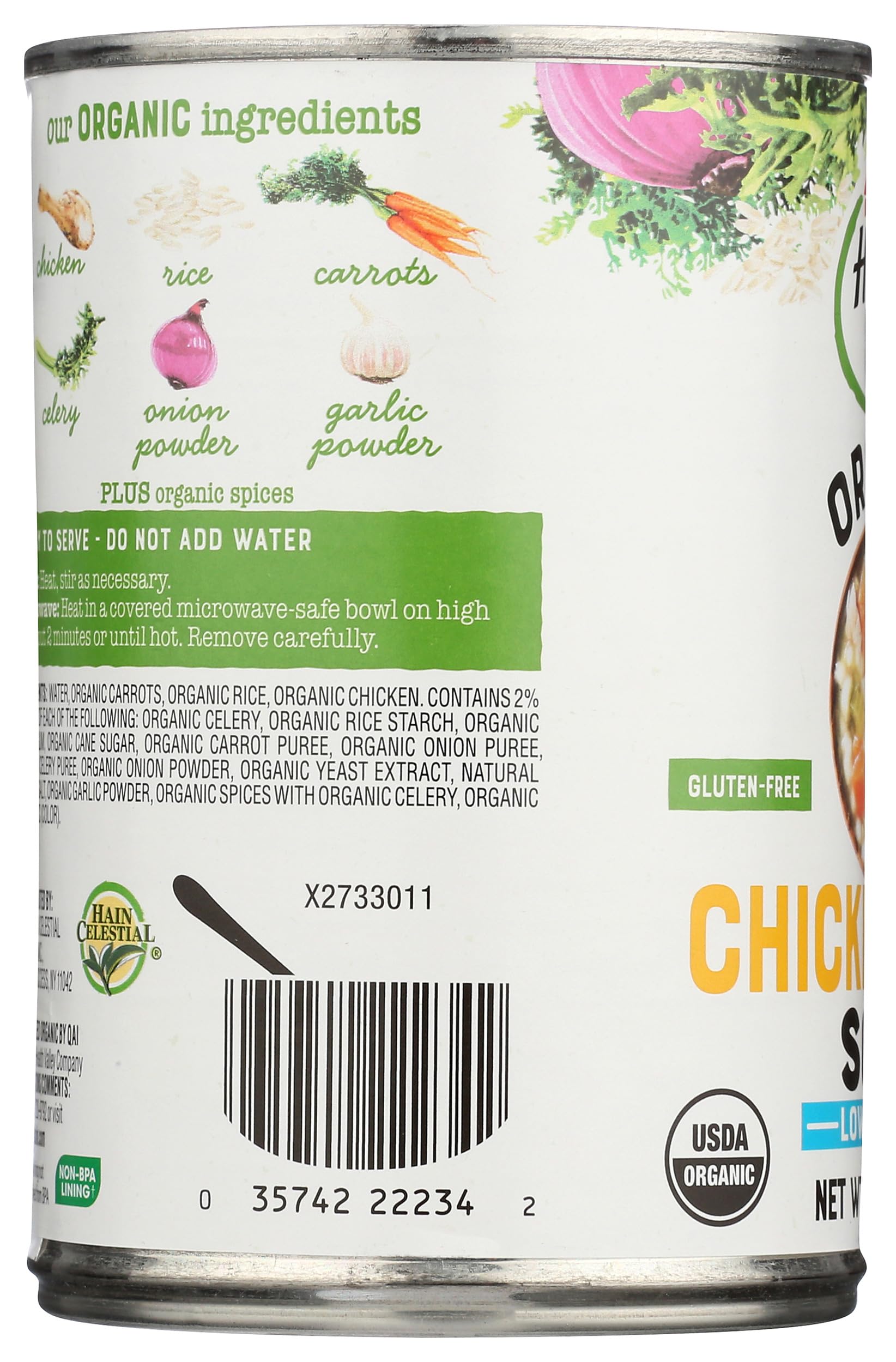 Health Valley Organic No Salt Added Soup, Chicken Rice, 15 Ounce. Our Organic Chicken Rice Soup is made from the finest vegetables, chicken and rice and has No Salt Added. It is a good source of fiber (3 grams) and antioxidant Vitamin A (20% Daily Value), and is low in fat (1.5 grams). Health Valley Organic No Salt Added Soup, Chicken Rice, 15 Ounce. Our Organic Chicken Rice Soup is made from the finest vegetables, chicken and rice and has No Salt Added. It is a good source of fiber (3 grams) and antioxidant Vitamin A (20% Daily Value), and is low in fat (1.5 grams). Enjoy this delicious, classic organic soup that is low in sodium but big on taste! This is not a sodium free food. With no artificial colors, flavors or preservatives in any of our products and with almost all of our selections made with 70-100% organic ingredients you'll never have to worry about what you're feeding your family. Health Valley is always the natural choice for breakfast, lunch, dinner, meals on the go, or a snack. And our great taste will make your family want to eat something that's "good for them." It doesn't get more natural than that.
