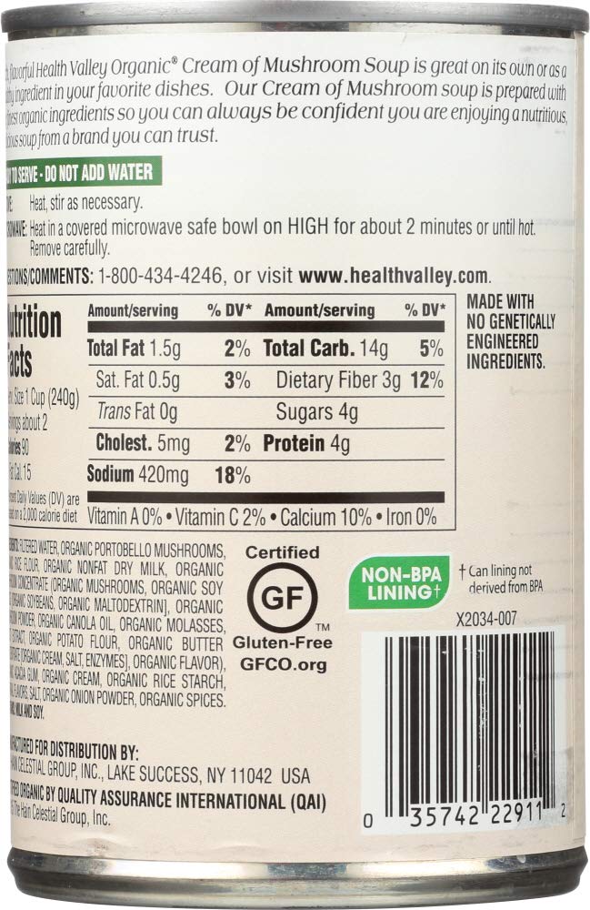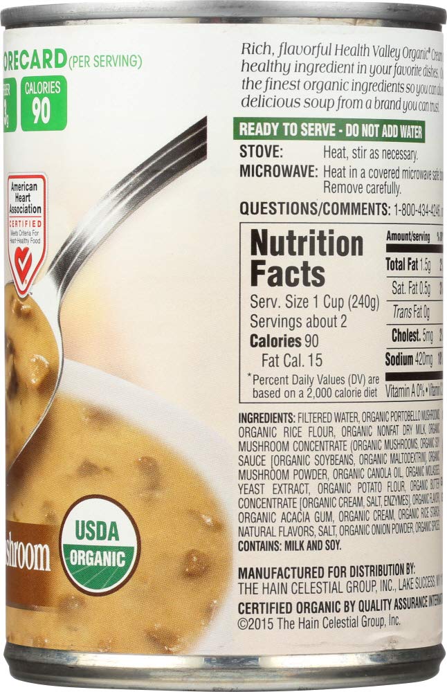 HEALTH VALLEY SOUP CRM OF MUSHROOM, 14.5 OZ, PK- 12