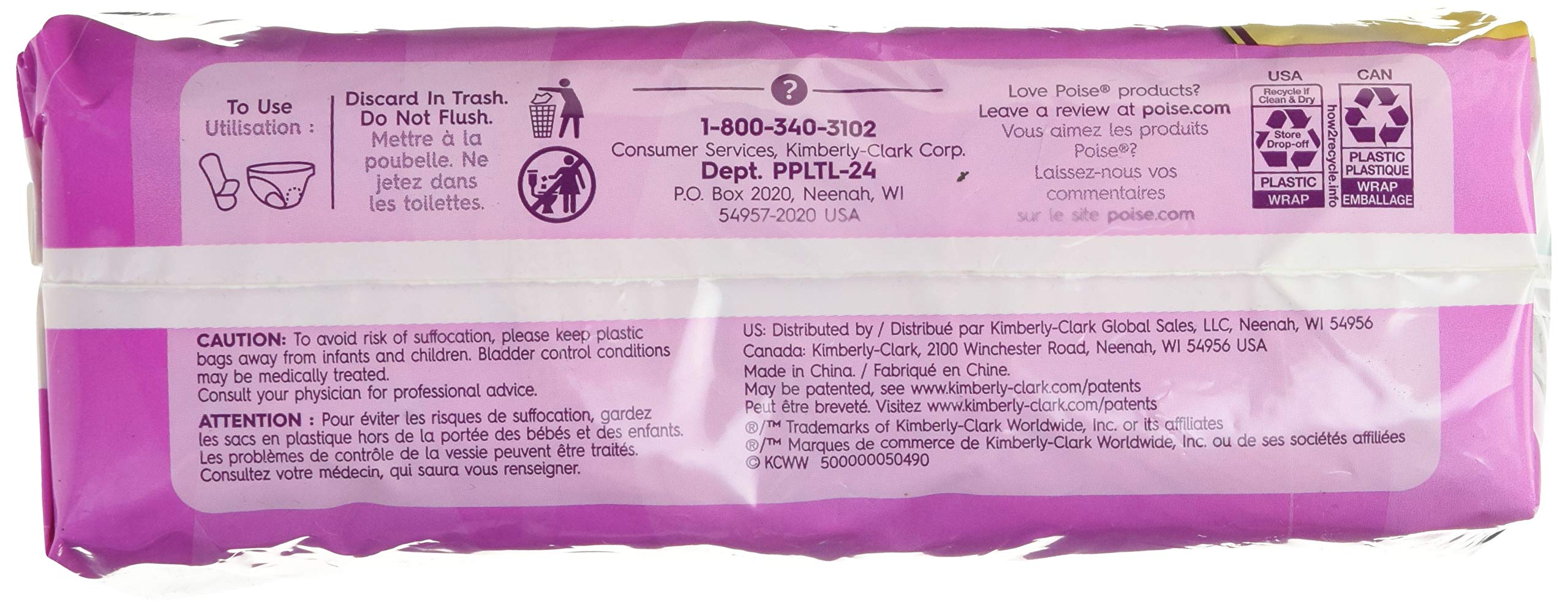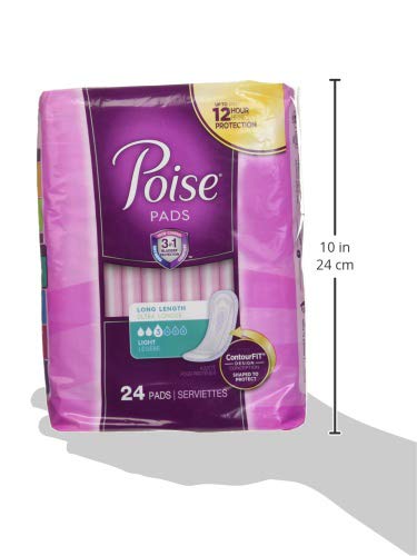 Poise incontinence ultra thins light absorbency, 24 count.