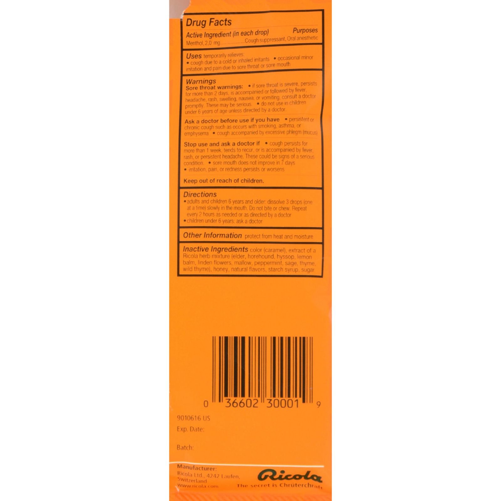 Ricola Honey Herb Throat Drop - 24 per pack -- 12 packs per casse. Ricola Honey Herb takes the unique flavor of Original Herb Ricola and softens it with pure, natural honey. The result is a mild, soothing cough drop ideal for treating less severe throat conditions associated with the common cold and allergies. Shlef Life: 360 days