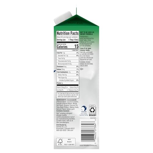 Silk Half & Half Alternative, Creamy Oat Milk and Coconut Milk, Smooth, Lusciously Creamy Dairy Free and Gluten Free Half and Half Creamer From the No. 1 Brand of Plant Based Creamers, 32 FL OZ Carton