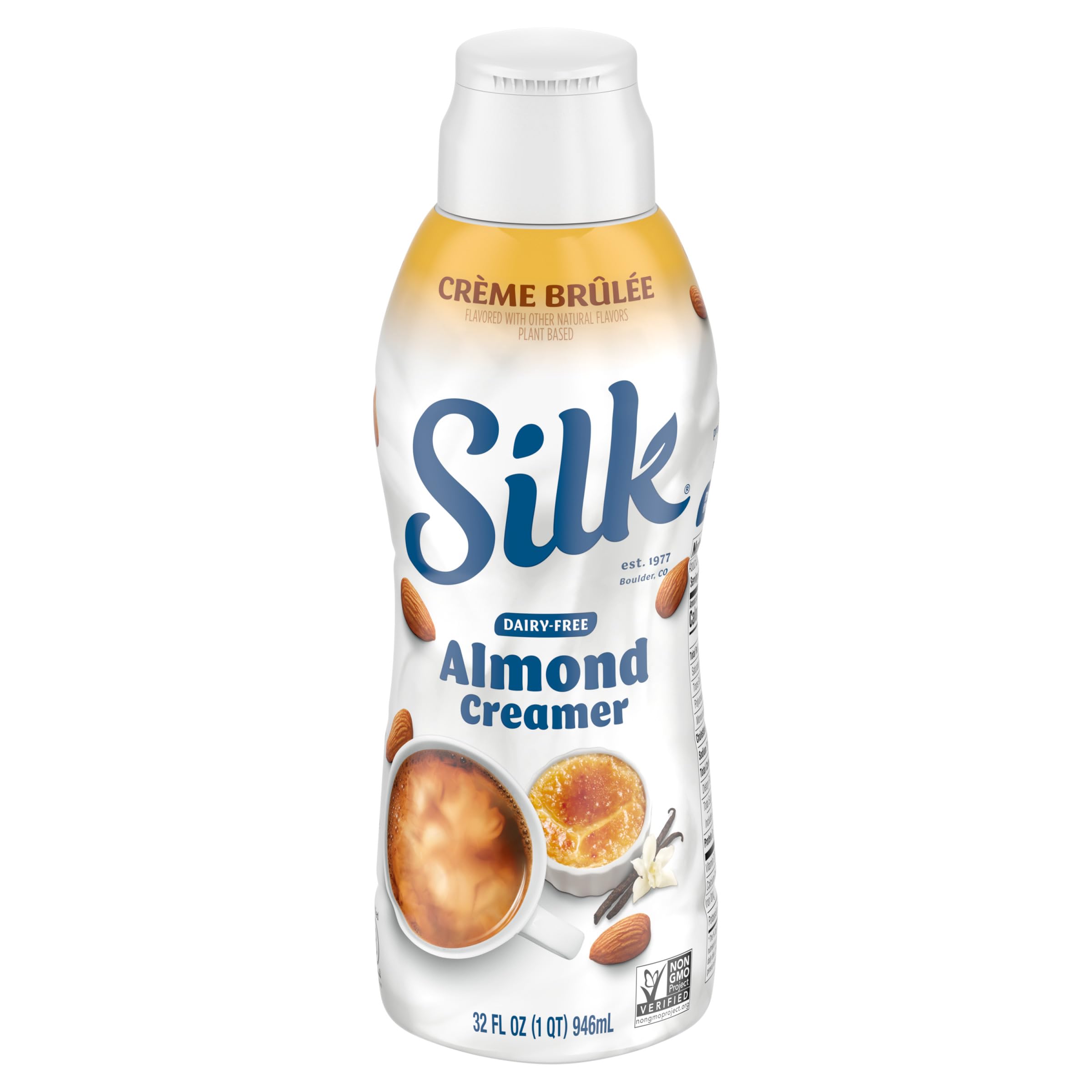 Make your days more flavorful with Silk Creme Brulee Almond Creamer. Not your average creme brulee coffee creamer, this smooth and lusciously creamy dairy free almond creme brulee creamer is a great way to start your day. Silk creamer is free of dairy, lactose, carrageenan and gluten, making it a great choice for any lifestyle. Plus, there are no artificial colors or flavors in this lactose free creamer. Make a “me” moment by adding a splash of this caramelized sugar and sweet vanilla flavored vegan creamer to smoothies, shakes, your morning coffee or anything that could use a smooth and creamy almond boost. At Silk, we believe in the power of plants to do a world of good, so people can enjoy good, feel good and do good. Silk gluten free, non dairy creamer is the #1 brand of plant based creamers.* It’s also Non-GMO Project Verified. Silk is passionate about doing right by the planet, which is why we're helping almond farmers implement regenerative agriculture practices. Level up your coffee experience with Silk Almond Creamer. *Leading brand based on national sales data.