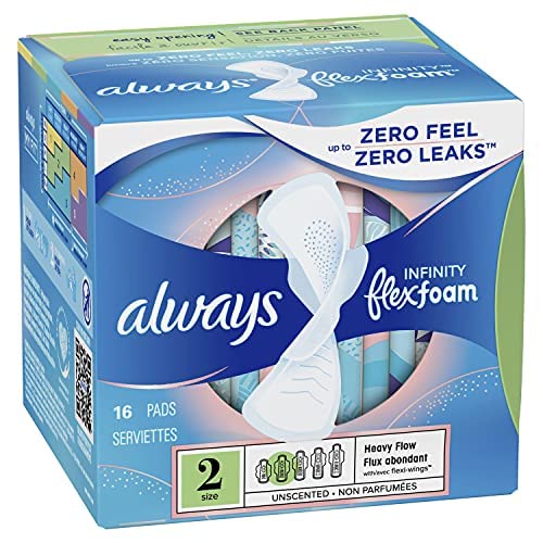 Always Infinity Unscented Pads with Wings, Heavy Flow, 16 Count (Pack of 12)