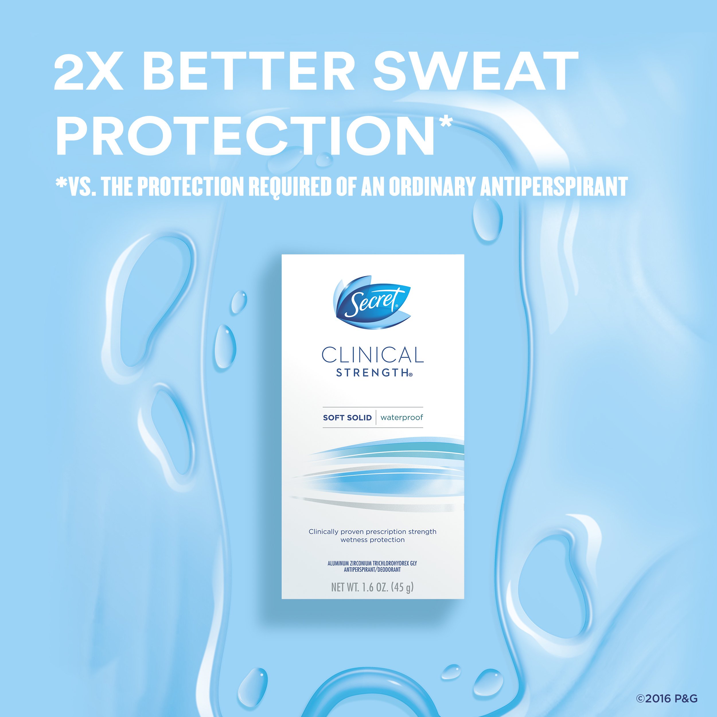 Never let them see you sweat! Secret Clinical Strength Antiperspirant and Deodorant for Women is clinically proven protection for 3 types of sweat; 1) stress sweat, 2) heat sweat and 3) activity sweat. Secret Clinical Strength offers the wetness protection of a prescription-strength product formulated to be gentle on skin, making it perfect for everyday use. Secret Clinical Strength Soft Solid-advanced protection to take on even the most stressful days. Also available in invisible solid and clear gel.