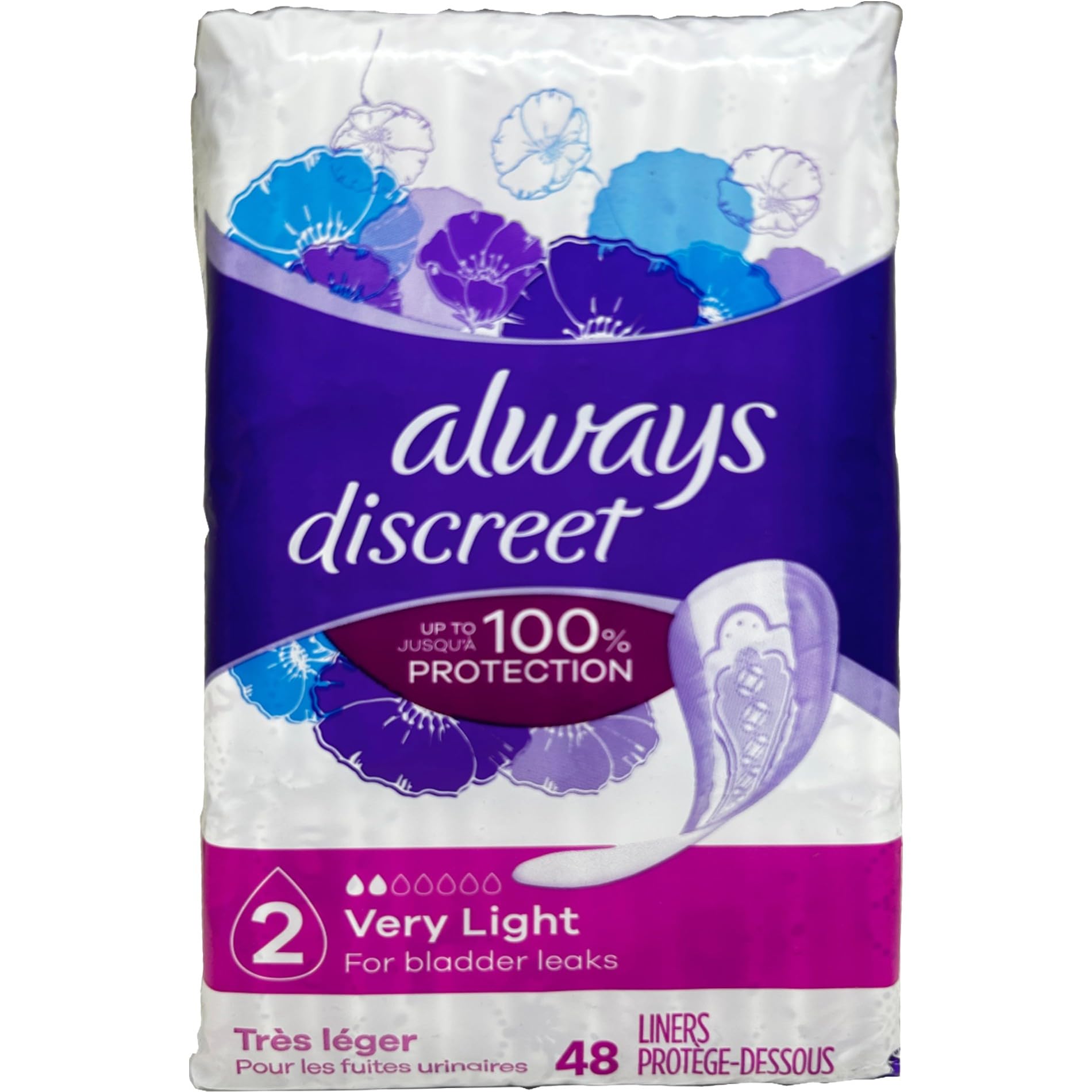 Always Discreet Incontinence Liners, Very Light Absorbency - 48 Ct Each Pack (4 Pack)
