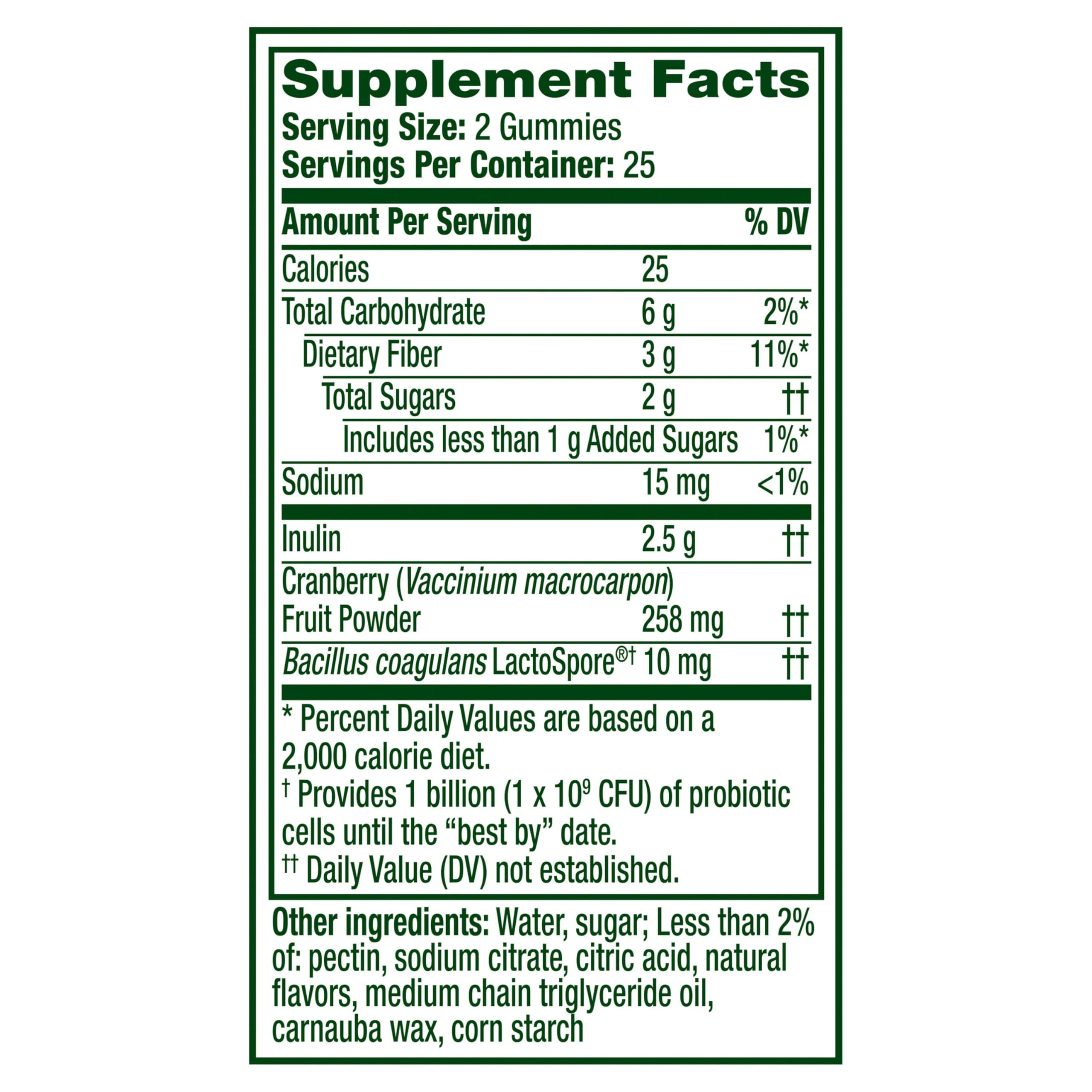 HELP NOURISH YOUR GOOD BACTERIA !* Align Probiotic is the #1 probiotic brand recommended by Gastroenterologists for over 14 years running due to its unique strain. Align Probiotic is nearly 2x more recommended than any other probiotic brand. * Good bacteria are essential to support a healthy digestive system. Align Prebiotic + Probiotic for Women Gummies are made with a prebiotic to nourish the good bacteria in your digestive system, and a probiotic to add even more good bacteria.* Plus, every great-tasting gummy serving supports your feminine health by providing an effective dose of cranberry to help maintain urinary tract health.* Align Women's Prebiotic + Probiotic Gummies taste great, are easy to chew, and don’t require water to take. They’re the good-for-you supplement that you’ll actually look forward to taking! Align Prebiotic + Probiotic Gummies contain 1 Billion CFUs – the effective dosage of our probiotic strain to support your digestive health*. Align Prebiotic + Probiotic for Women Gummies are gluten-free and no refrigeration is required. *THESE STATEMENTS HAVE NOT BEEN EVALUATED BY THE FOOD AND DRUG ADMINISTRATION. THIS PRODUCT IS NOT INTENDED TO DIAGNOSE, TREAT, CURE, OR PREVENT ANY DISEASE *Among Doctors and Gastroenterologists who recommended a brand of probiotic in ProVoice 2024 survey