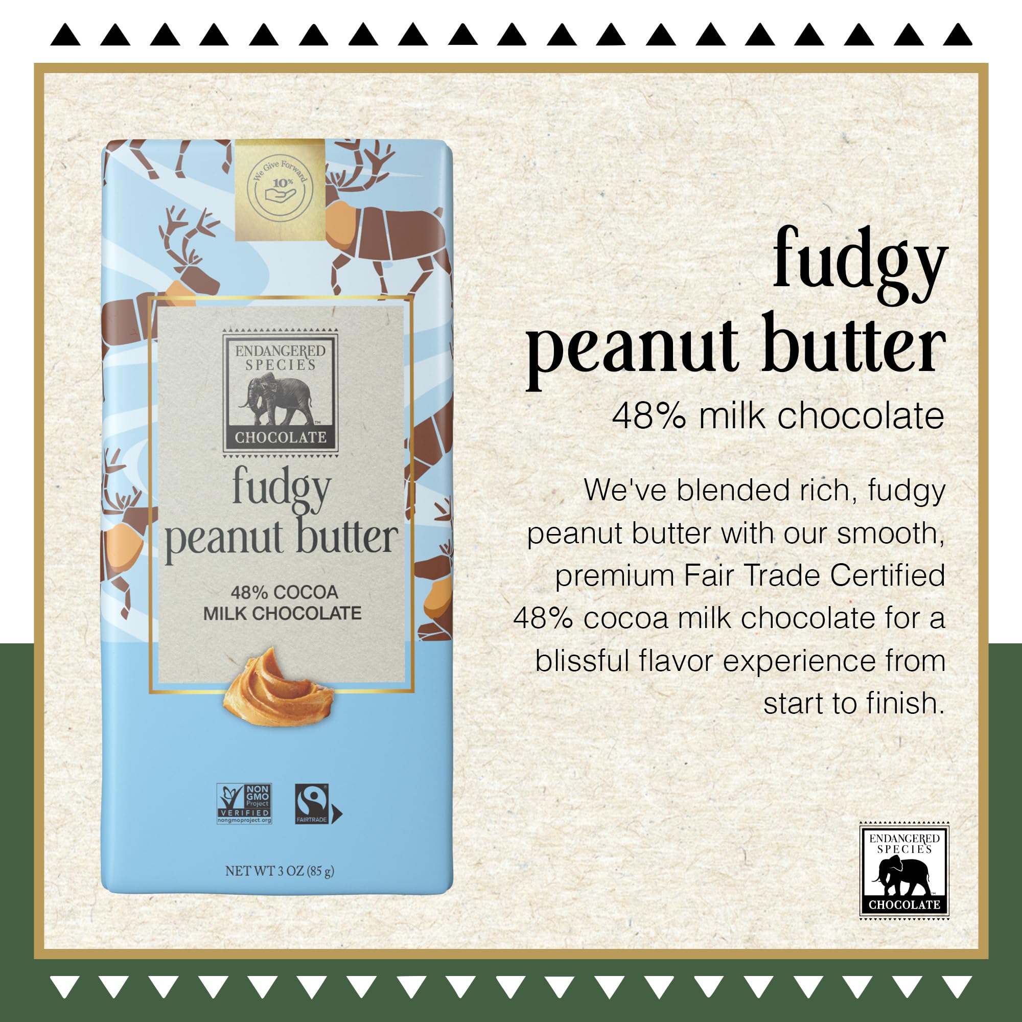 ENDANGERED SPECIES Fudgy Peanut Butter & Milk Chocolate Bar, 3 OZ