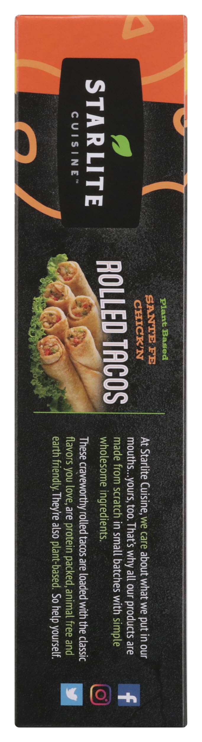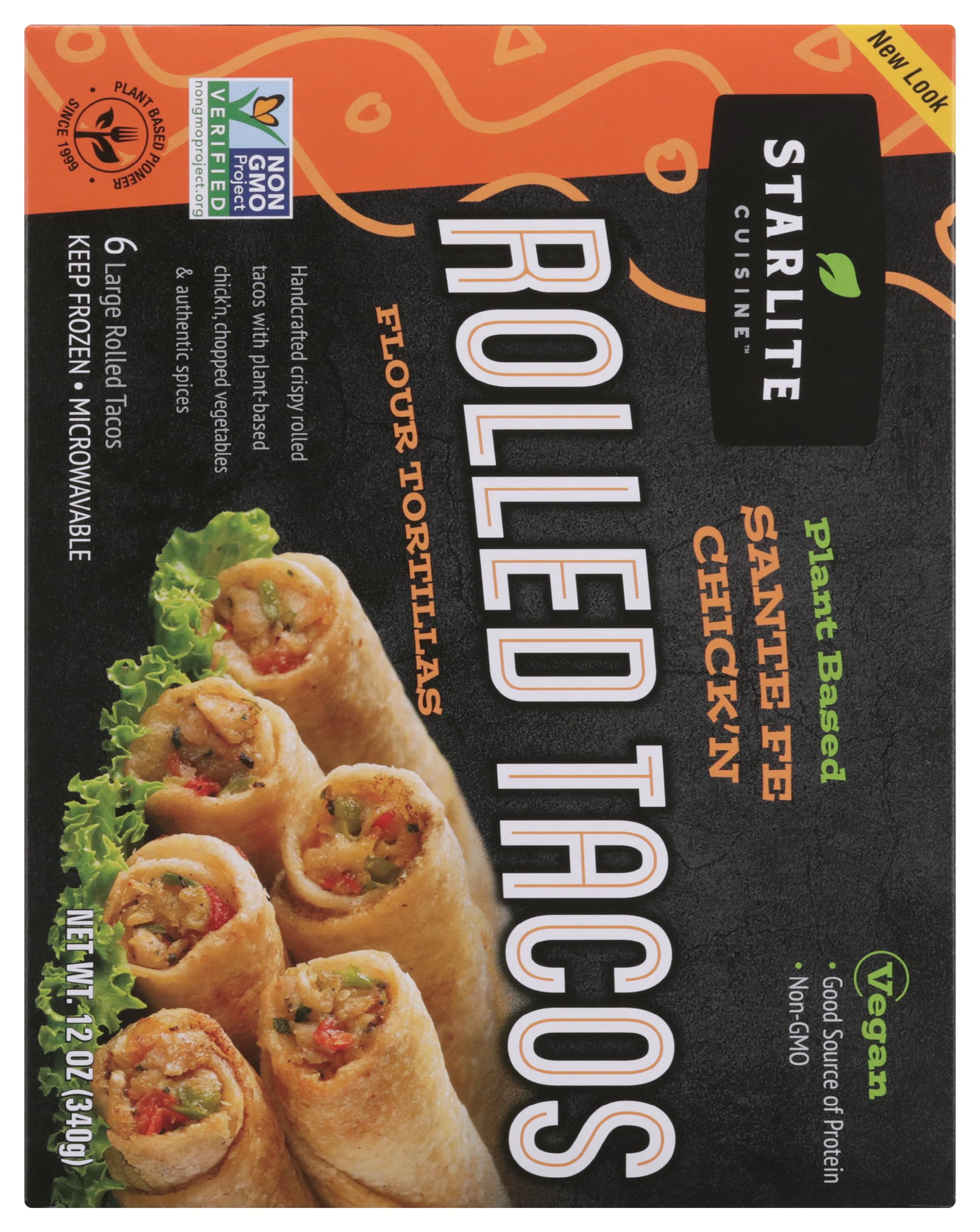 Starlite cuisine santa fe style frozen rolled tacos are delicious flour tortillas made using all-natural ingredients that are rolled by hand and overflowing with spicy goodness. Inside each of these six 2 ounce vegan tacos is a delicious mix of soy protein, onions, mushrooms, corn, beans, green and red bell peppers, tomatillos, and authentic spices to fuel your craving for mexican cuisine.