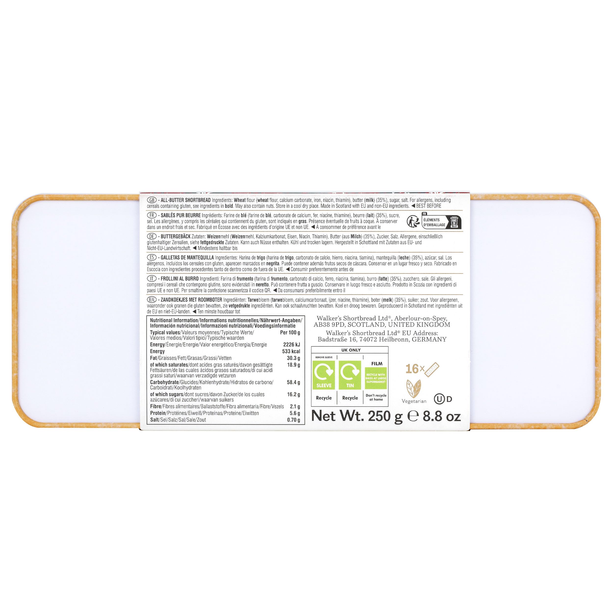Walker's Shortbread Festive Fingers Tin, Christmas Cookies, Holiday Gift, All-Butter Cookies, 16 pieces - 250g