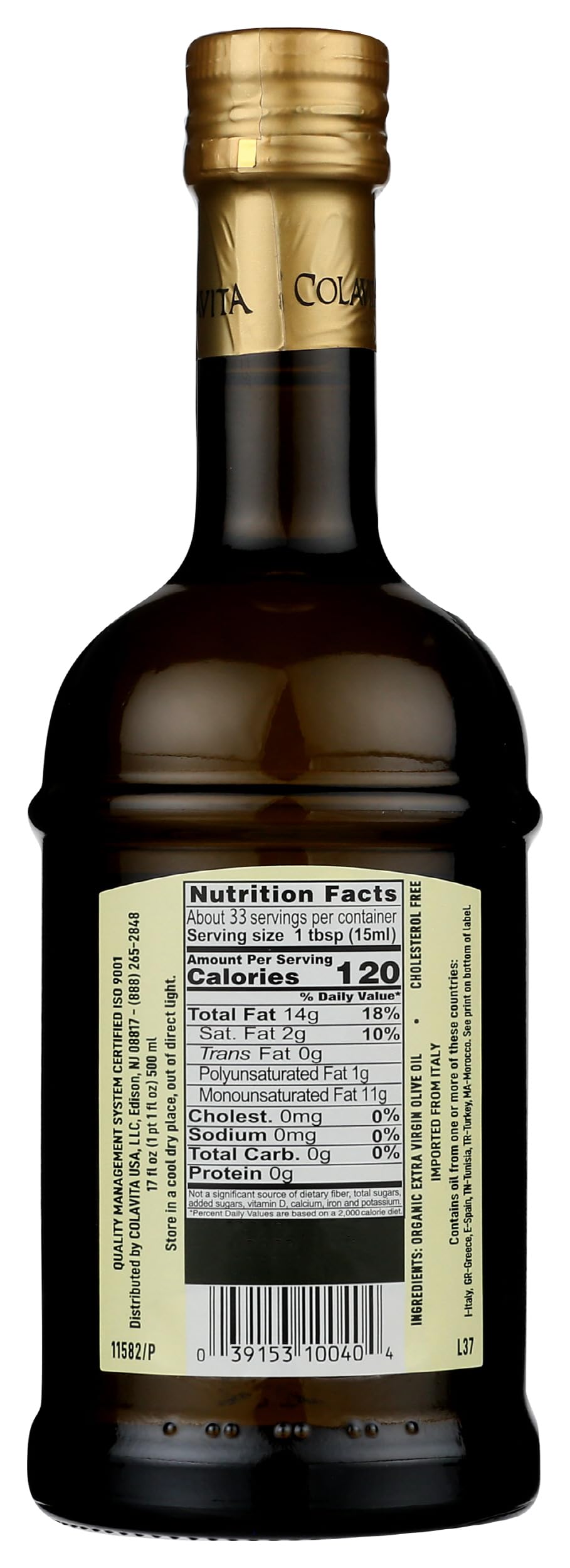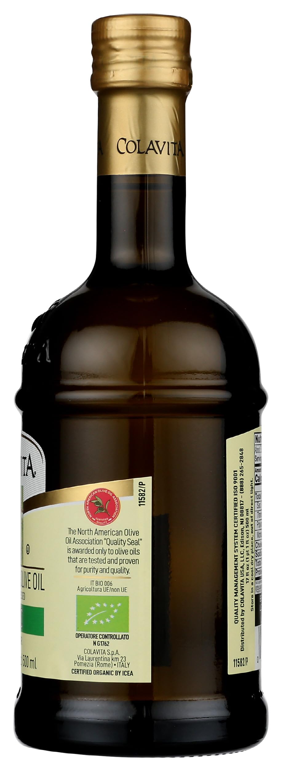 This oil was obtained exclusively from Olives harvested and pressed in Italy. Produced by cold pressing organic olives grown and harvested without using pesticides or herbicides. The CERMET seal certifies the authenticity of Colavita Extra Virgin Olive Oil. Colavita was the first Italian company to receive this important certification declaring its extra virgin olive oil as 100% Italian. USDA Organic.