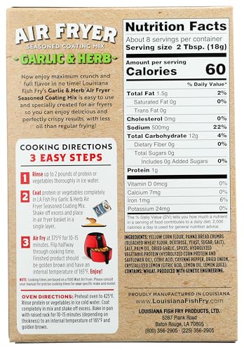 Louisiana Fish Fry Air Fryer Seasoned Garlic & Herb Coating Mix, 5 Ounces (Pack Of 6)
