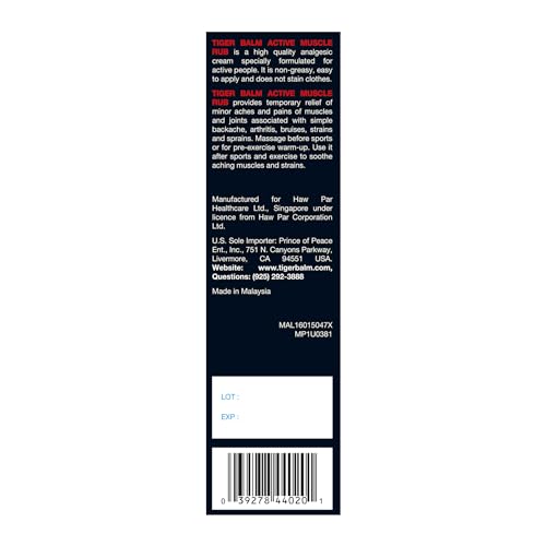 A tube of Tiger Balm Muscle Rub may just be the most versatile equipment in your gym bag. This non-greasy, easy-to-apply cream can be used before and after physical activity. Applying it to target areas before sports or exercise helps prevent muscle stiffness from setting in. Using it afterwards provides relief for muscle strains, backaches, and other muscle aches and pains that can come from physical activity. Tiger Balm's Muscle Rub is trusted by the world's leading athletes and trainers for fast, safe and effective pain relief without the potential side effects pills can cause.