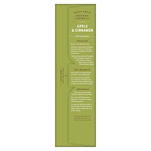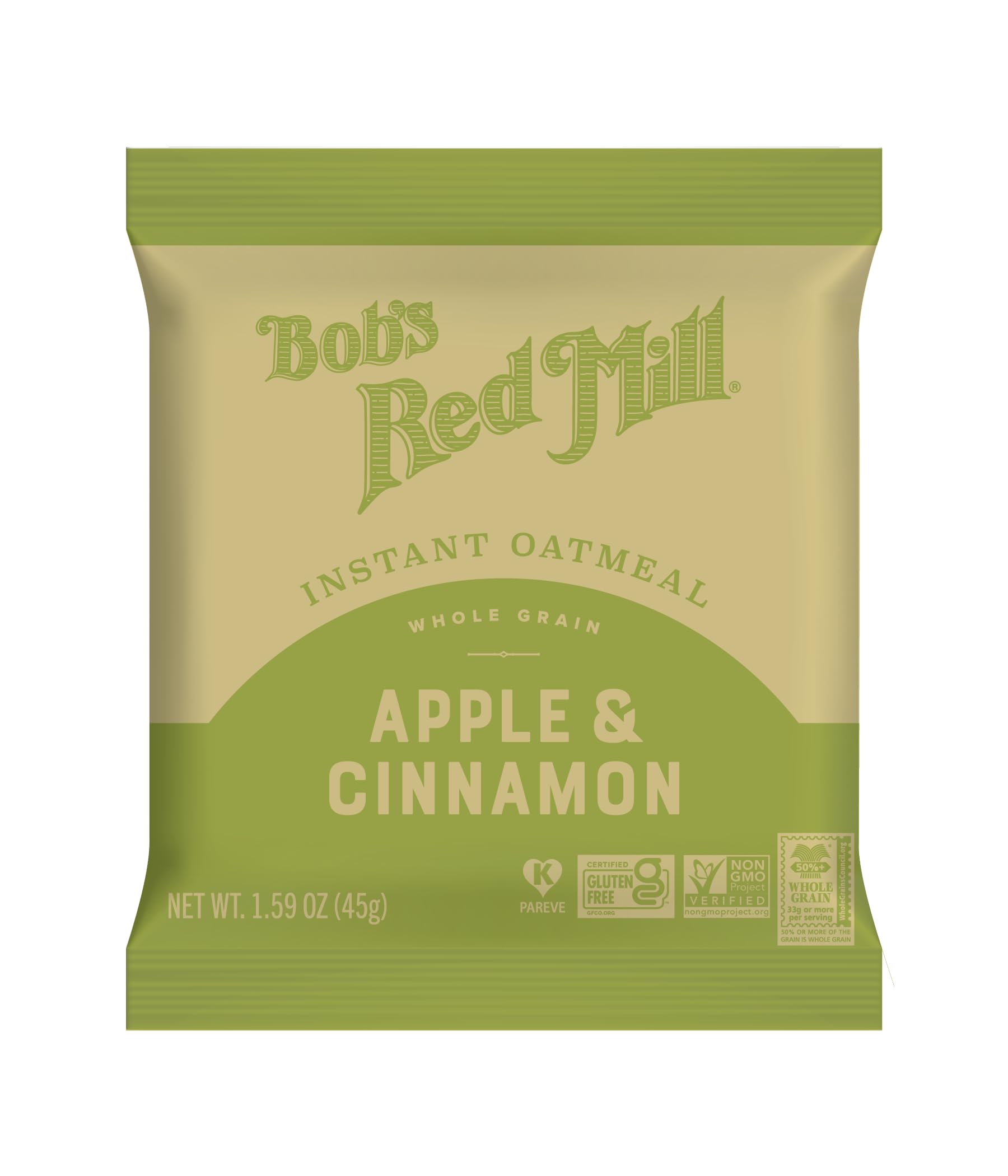Good mornings are made simple with Bob’s Red Mill Apple & Cinnamon Instant Oatmeal. Crafted with real fruit and Bob’s Signature Four Oat Blend—featuring whole grain rolled oats, quick oats, Scottish oats and oat bran—this premium instant oatmeal delivers scratch-quality texture and flavor in minutes. In just three minutes, serve up a thick, creamy bowl with just the right balance of chewiness and cozy comfort. Made with 100% whole grains, it’s a nourishing way to fuel your day with 4 grams of protein. Each packet is a good source of fiber, helping you feel full and satisfied. Enjoy on its own or customize with your favorite toppings like fresh fruit, nuts or a drizzle of honey. Whether at home, at work or on the trail, these convenient single-serve packets bring wholesome goodness wherever the day takes you. Bob’s Red Mill makes it easier than ever to enjoy the World’s Best Oatmeal.