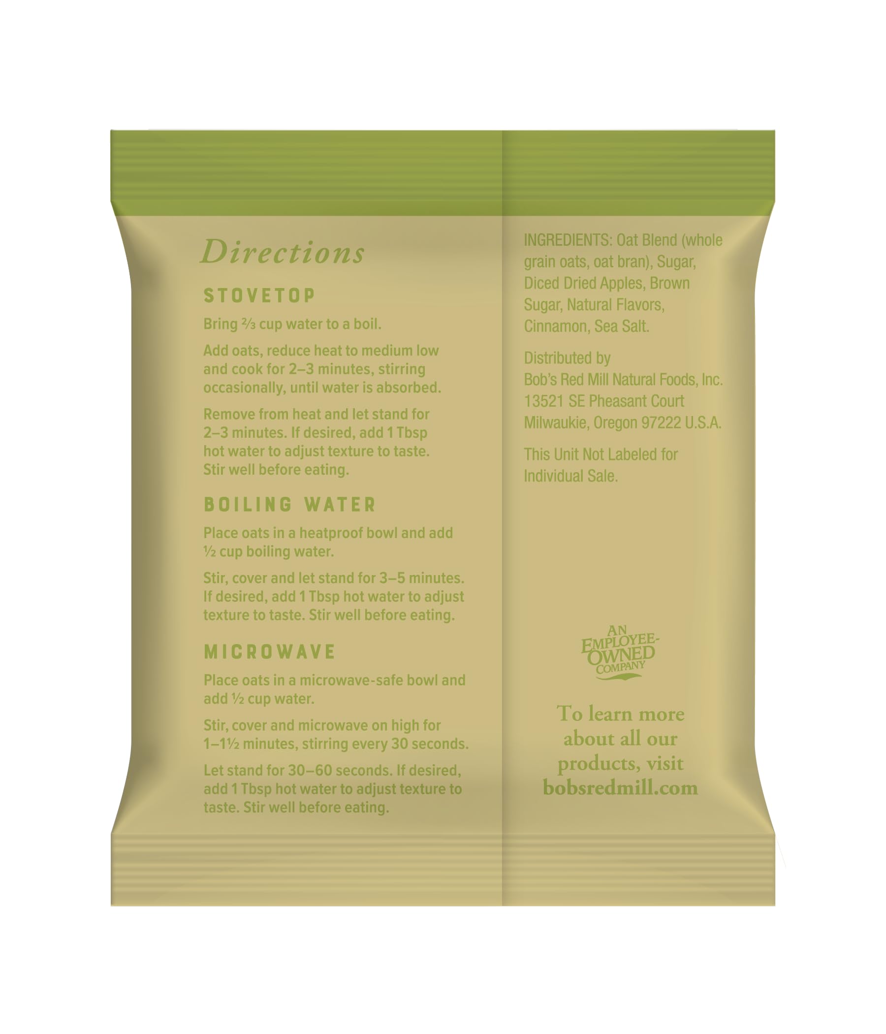 Bob's Red Mill Instant Oatmeal Packets, Apple & Cinnamon, 6 Packets Total (1 Box/6 Packets per Box), Non-GMO, Gluten Free, Whole Grain