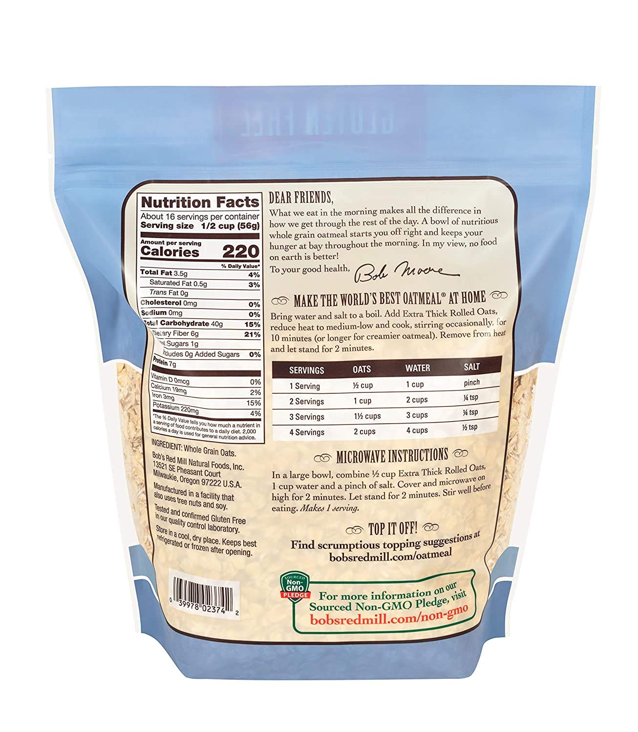 Bob's Red Mill Gluten Free Extra Thick Rolled Oats (32 Ounce, Pack of 2)