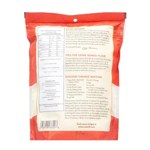 Bob's Red Mill Organic Quinoa flour is an excellent ingredient for gluten free baking. It imparts a delicate, nutty flavor in gluten free baking and is versatile for sweet or savory application. We mill this flour from the whole quinoa grain with nothing added or removed, so you'll find all the nutrition from whole grain quinoa in this flour. Certified organic by QAI. Like all our gluten free-labeled products, this product is processed in a dedicated gluten free facility and R5-ELISA tested to confirm its gluten free status.