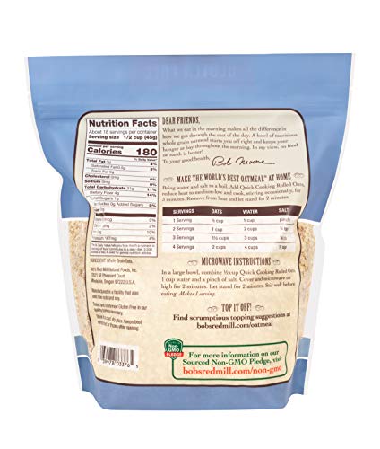 Bob's Red Mill Gluten Free Quick Cooking Rolled Oats, 28 oz (Pack of 1) - Gluten Free, Non-GMO, Vegan, Whole Grain, Kosher