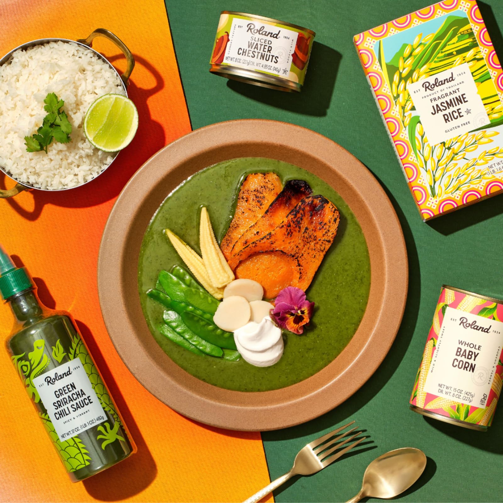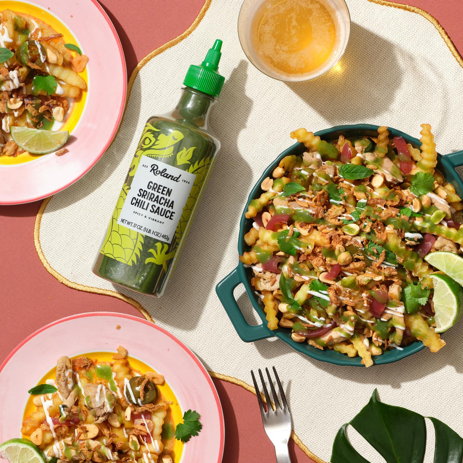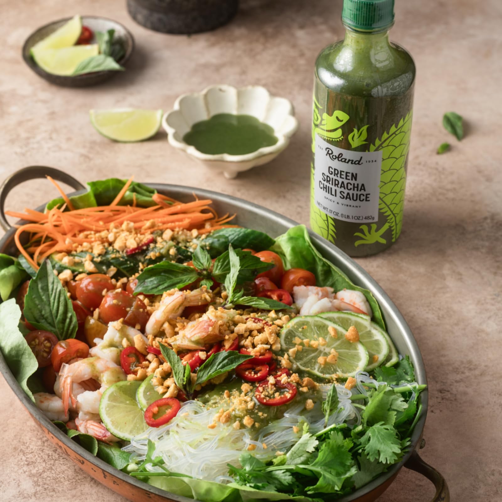 Roland Green Sriracha Chili Sauce is a vibrant, acidic, and flavorful condiment with notes of lemongrass and ginger for an authentic Southeast Asian twist on traditional sriracha. Plant-based, this product is the perfect topper for poke and noodle bowls, burgers, tacos, and more.