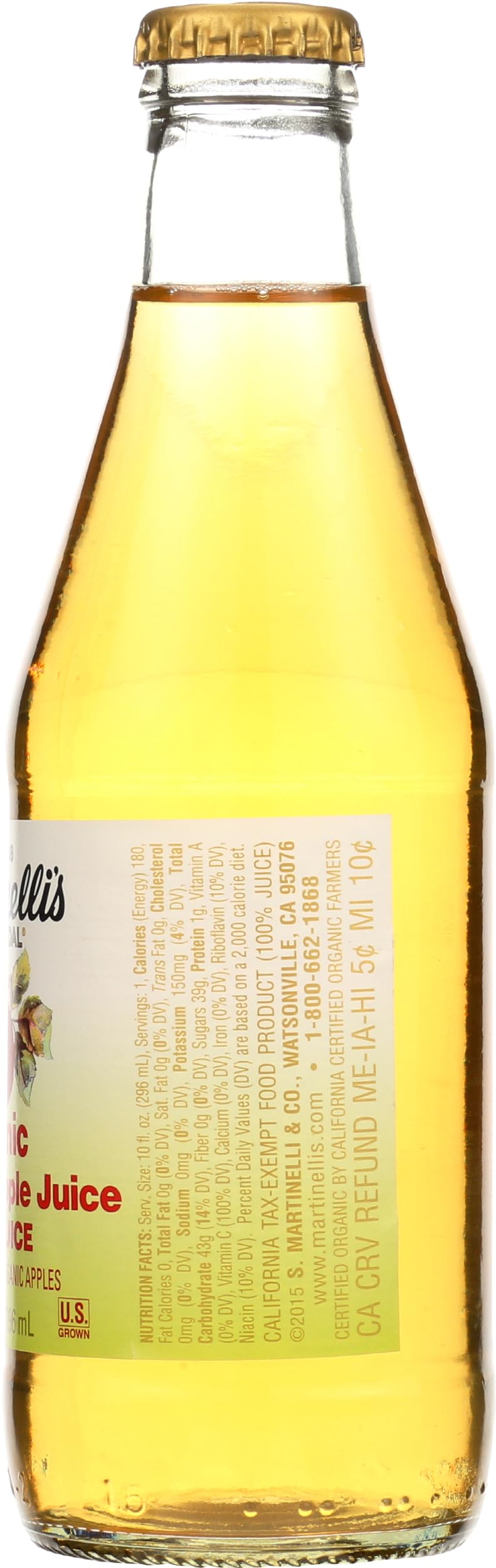 Martinelli's sparkling apple juice is pasteurized 100% pure carbonated juice from u.s. grown fresh apples. Each 10 fl oz glass bottle is a single serving with 180 calories and 100% of your daily recommended vitamin c value. Our sparkling apple juice is kosher with no sweeteners or water added and is not from concentrate.