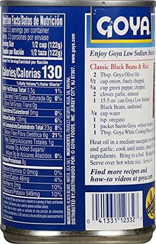 Goya Black Beans, Low Sodium, Canned, Vegan, Kosher, 15.5 Ounces (Pack Of 24)