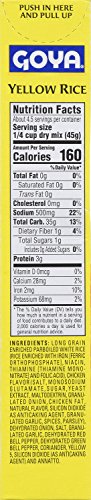 Goya Foods Yellow Rice, Spanish Style, 7 oz | Meat, fish, chicken and vegetable lovers can complement their dishes with this versatile, easy-to-make GOYA Yellow Rice Mix. Its secret blend of onion, garlic and other rich Latin spices goes perfectly with any meal. It can be used as an ingredient in a flavorful main dish or as a tasty side dish. GOYA Yellow Rice Mix is fat free (saturated fat free and trans fat free) and cholesterol free.