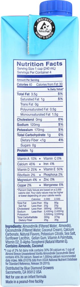 Blue Diamond Unsweetened Coconut Almond Breeze Vanilla -- 32 Fl Oz