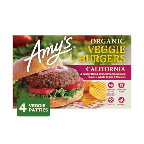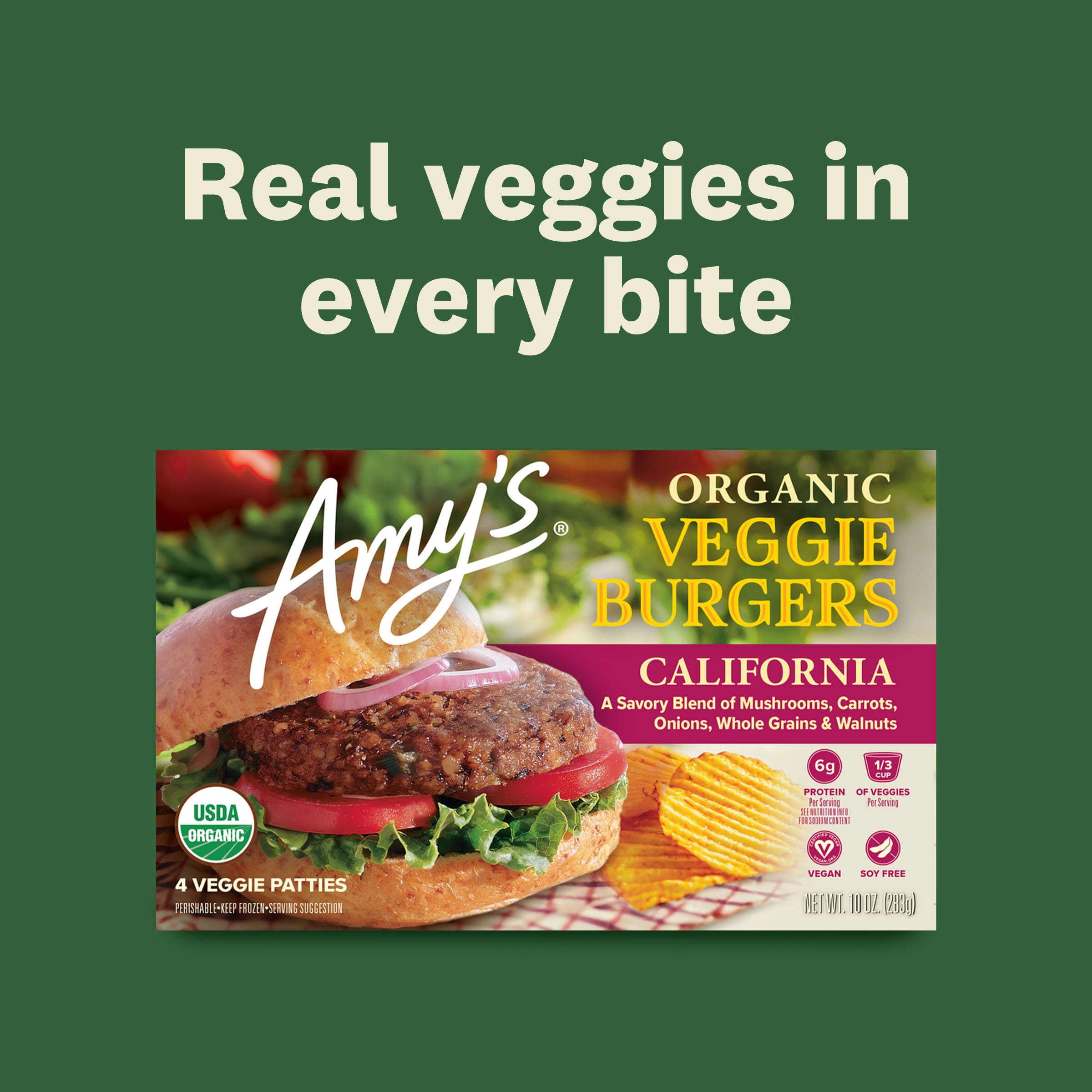 Amy's Frozen Meals, Vegan and Dairy Free Veggie Burger, USDA Organic, 10 oz. (4 Pack)