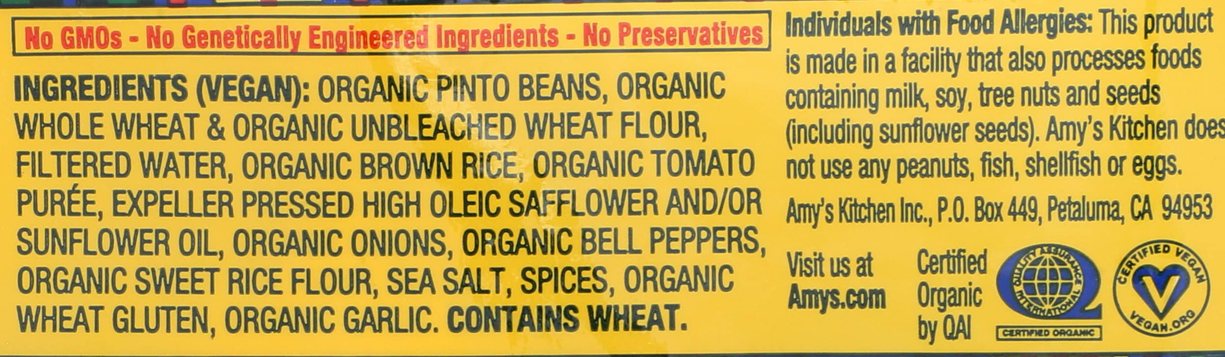Amy's Organic Non-Dairy Bean And Rice Burrito, 6 OZ