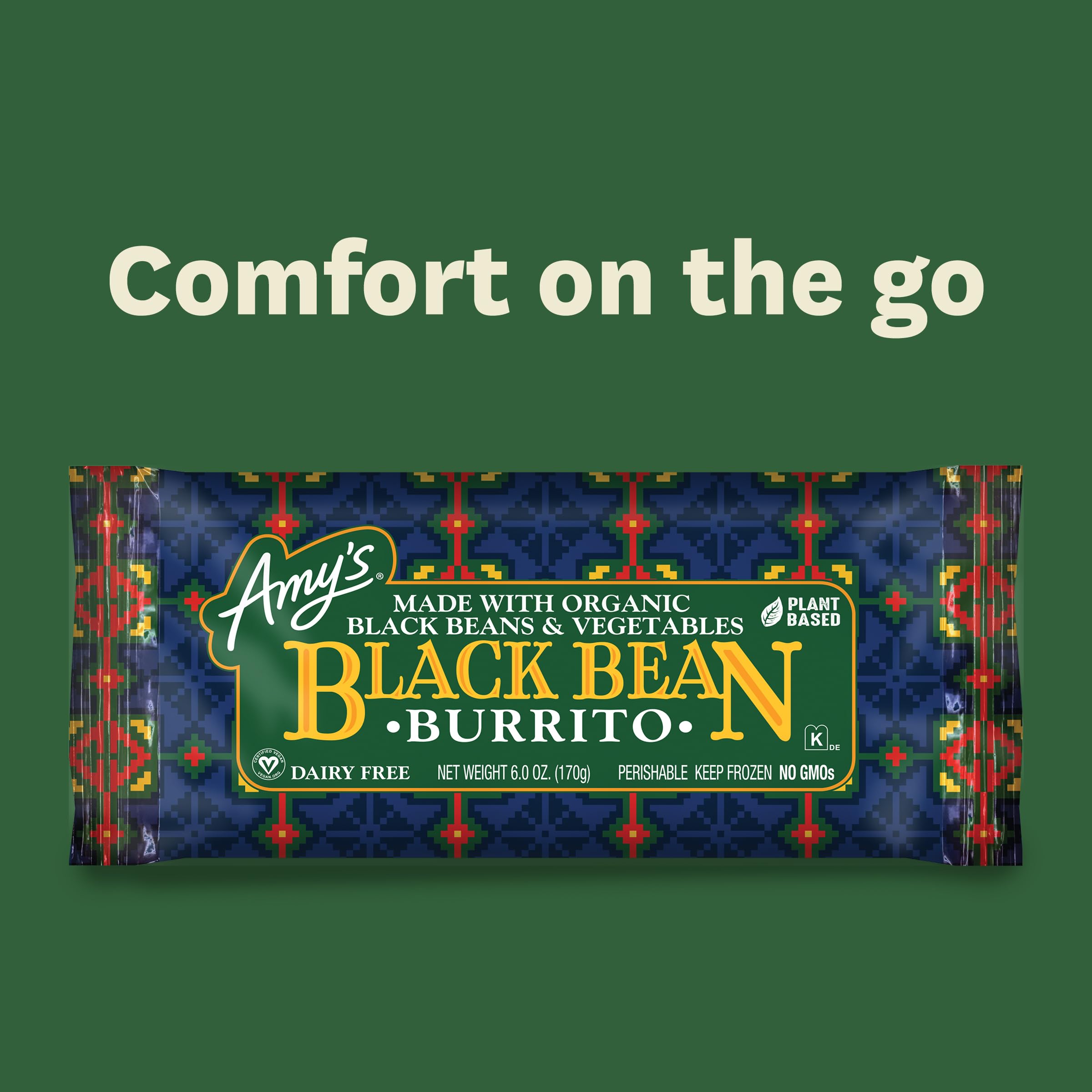 Amy's Frozen Black Bean Burrito, Vegan, Made with Organic Beans and Vegetables, 6.0 Ounce