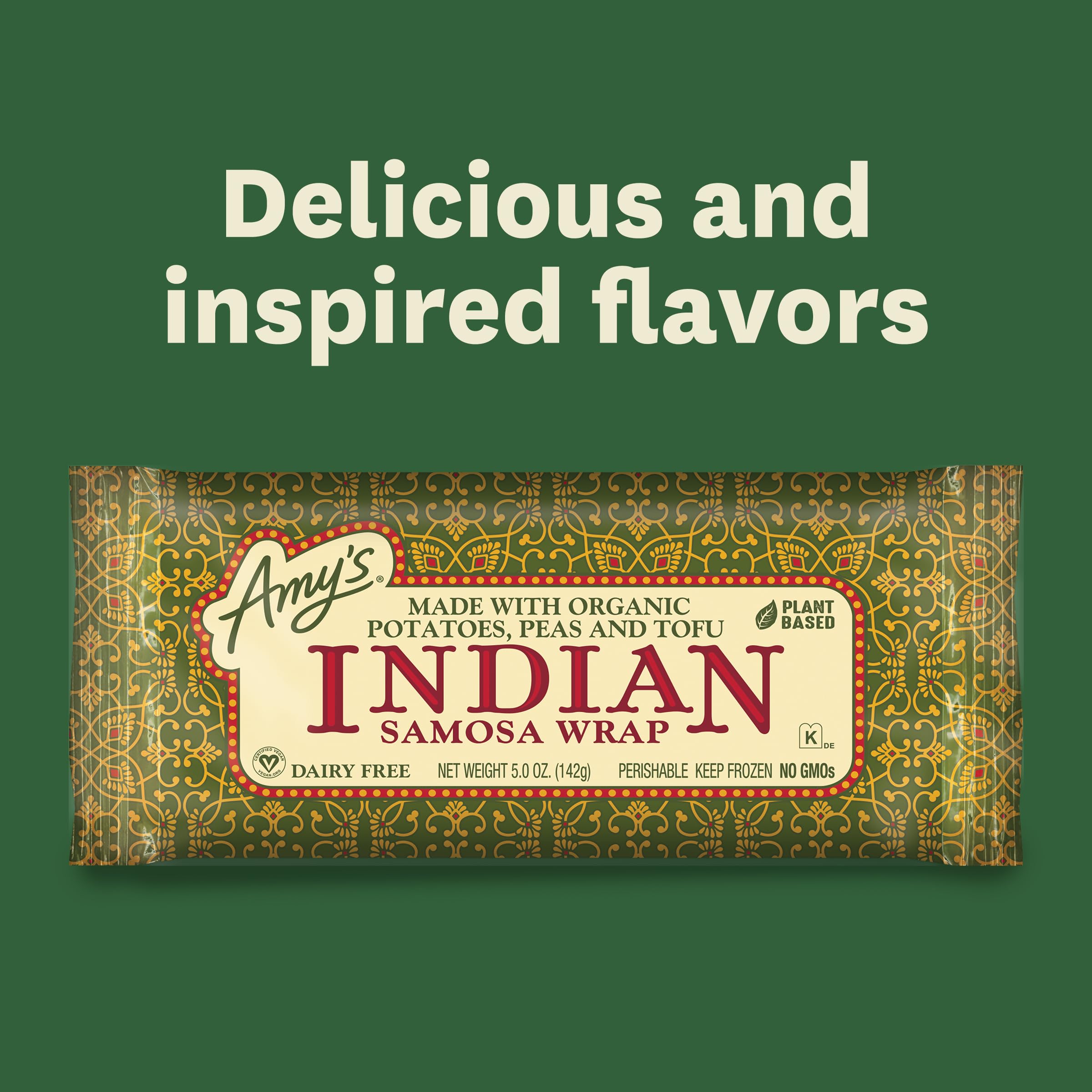 Amy's Indian Samosa Wrap is made with lightly-spiced organic potatoes, peas and tofu, all wrapped in a soft-baked, wheat tortilla. It's a samosa-meets-wrap-meets-delicious delight! Convenient and easy to prepare, this Amy's Indian Samosa Wrap contains wheat and soy, is dairy free, lactose free, corn and tree nut free, and is suitable for vegan and kosher diets. At Amy’s Kitchen goodness is our guiding principle. Since 1987, we at Amy’s Kitchen produce delicious, organic convenient foods for people who are sometimes too busy to cook. Amy’s is a family-run business, and we supervise every aspect of our business and take pride in customer satisfaction. All the fruits, vegetables and grains we use are grown without the use of insecticides, GMOs and other harmful chemicals. We prepare these ingredients with the same careful attention in our kitchen as you would in your own home for high-quality, home-style vegetarian and vegan meals. No meat, fish, shellfish, poultry, eggs or peanuts are ever used in any Amy's products. Even though you're heating up our meals in your home, we want each bite to taste like you're a guest in ours.
