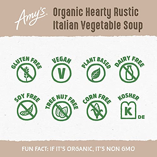 Amy’s Soup, Vegan Hearty Rustic Italian Vegetable Soup, Gluten Free, Made With Organic Beans and Rice, Canned Soup, 14 Oz