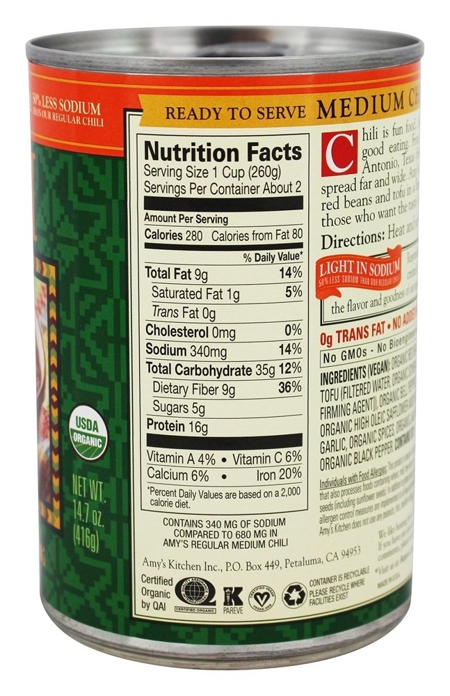 Amy's, Organic Low Sodium Medium Chili, 14.7 Ounce...