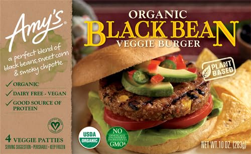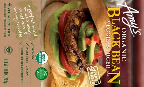 Amy's Frozen Meals, Veggie Black Bean Burger, USDA Organic, Vegan & Dairy Free, 10 oz. (4 Pack)