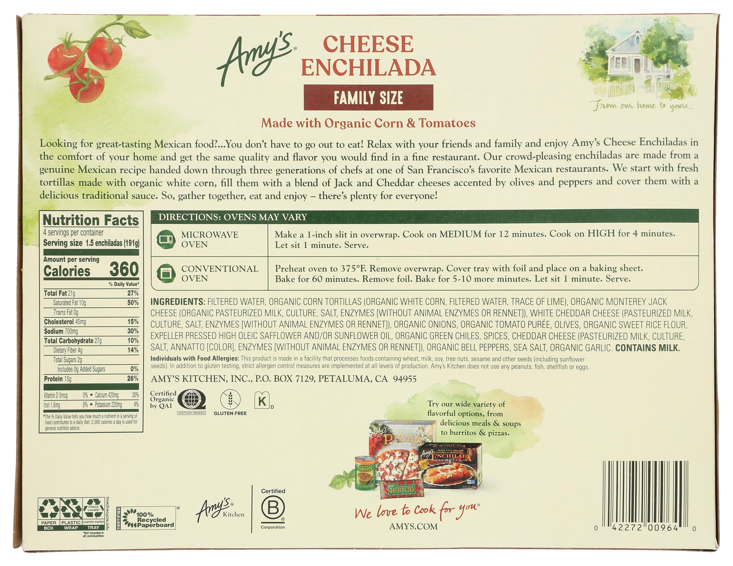 Family size of Amy's Cheese Enchilada the whole family will love