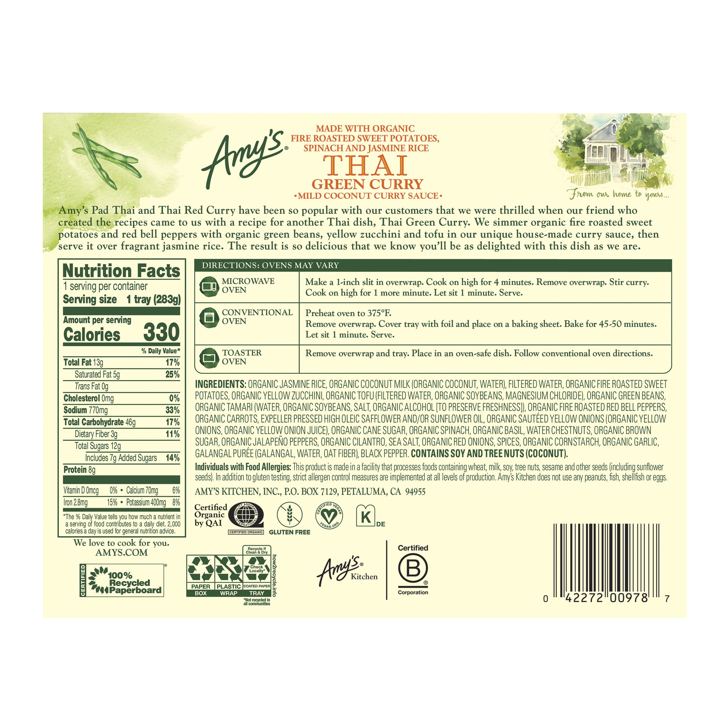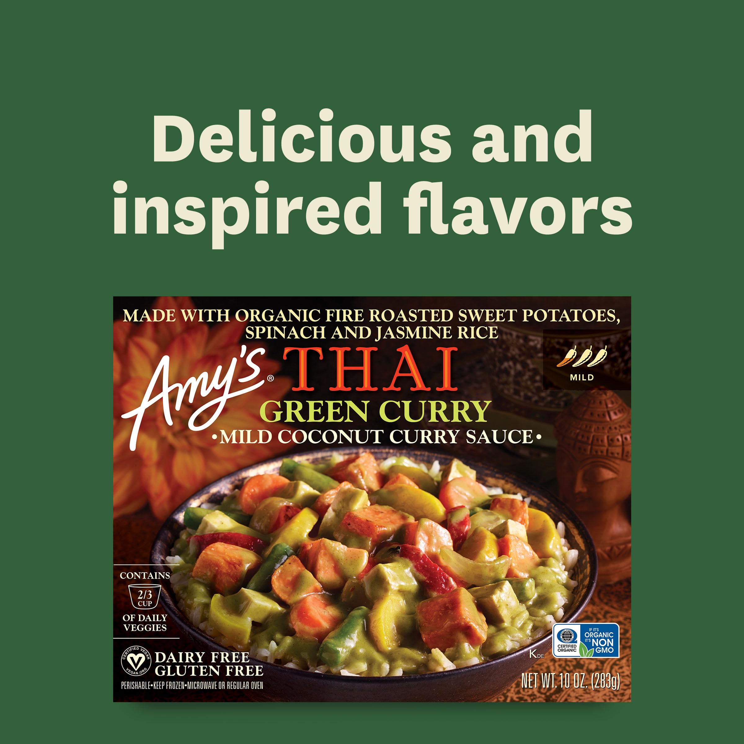 Amy's Frozen Meals, Thai Green Curry, Made with Organic Jasmine Rice, Spinach, Sweet Potatoes and Coconut Milk, Gluten Free, 10 oz.