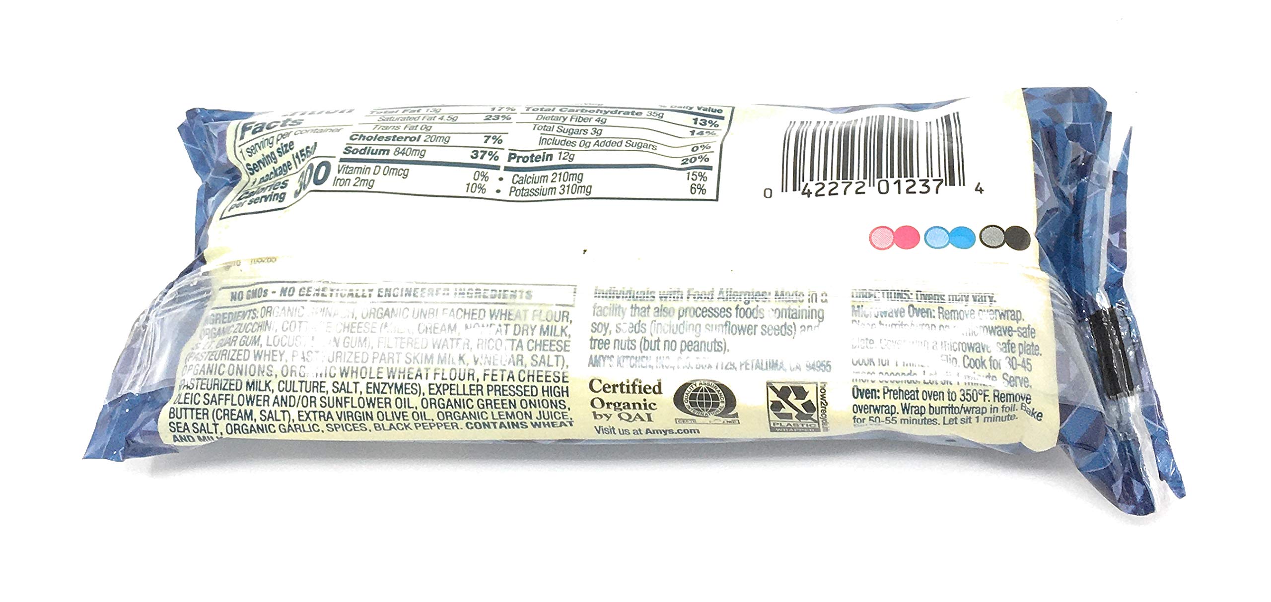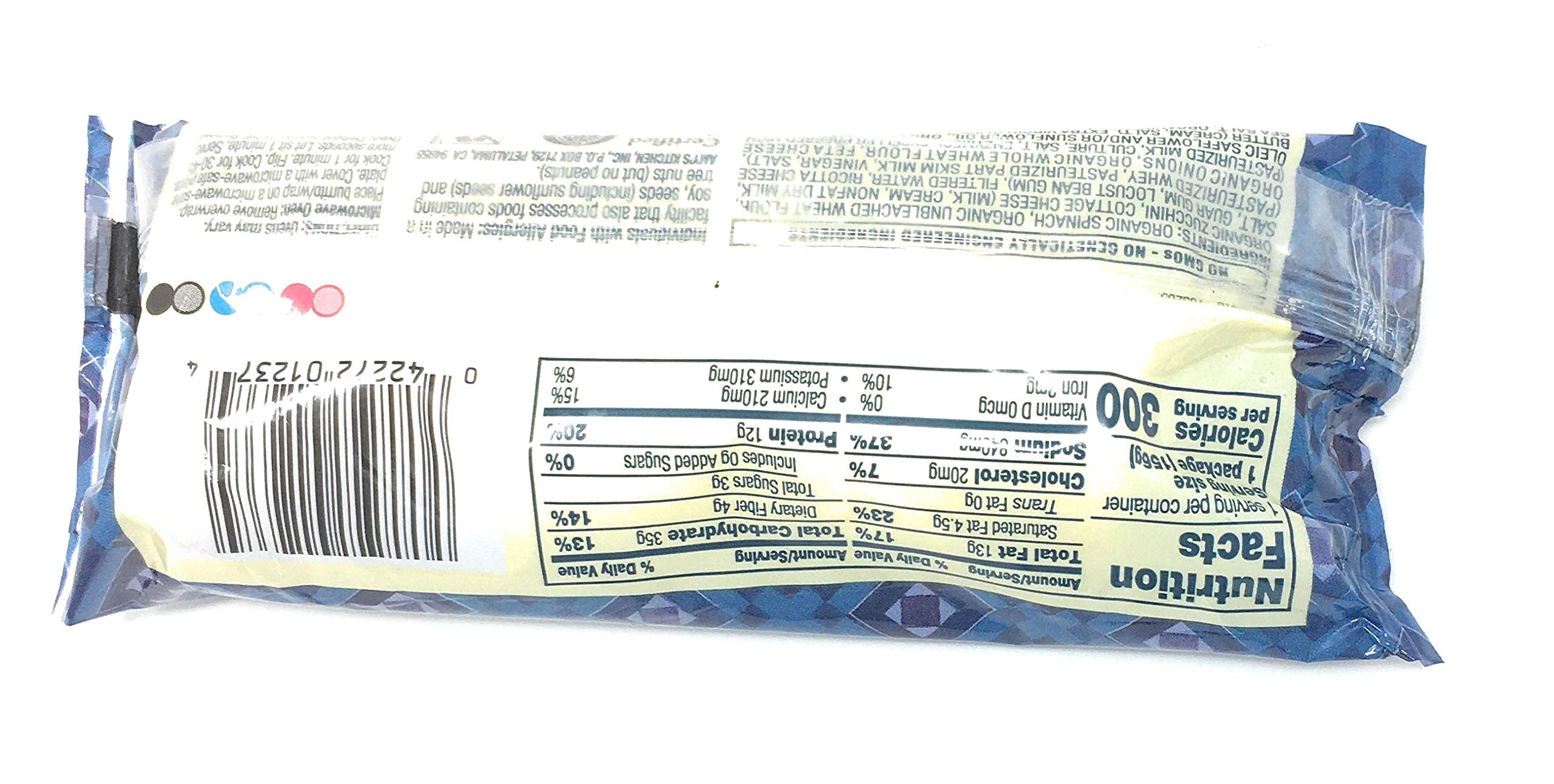 We've managed to take all the best flavors of the Greek islands and combine them all into one delicious and convenient wrap! Our Greek spanakopita wrap is chock-full of organic spinach mixed with creamy feta and ricotta cheeses and a special blend of spices that will take you all the way back to the Mediterranean. We use organic onions, scallions and garlic and wrap it all up in a delicate and flaky tortilla. From the other side of the world to your microwave: enjoy! Soy free/tree nut free/Corn Free/kosher