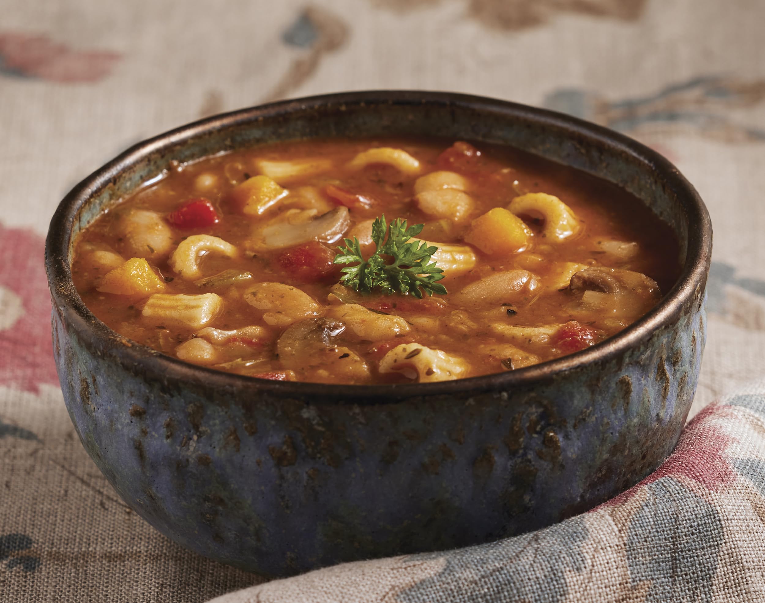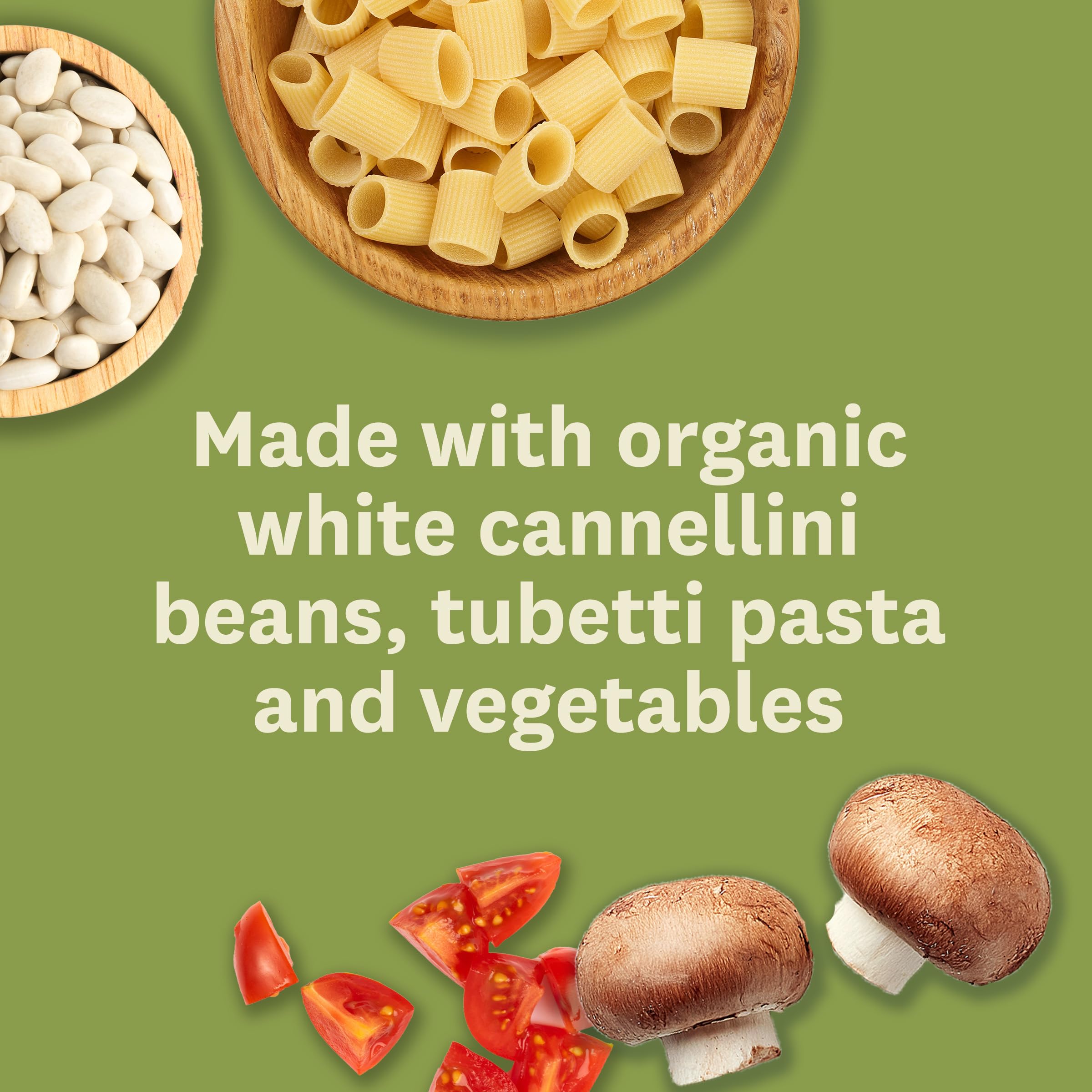 Chef Steve created this organic and hearty Italian-inspired soup. Perfectly cooked tubetti pasta and creamy cannellini beans are added to an herbaceous tomato broth. We combine this with lots of organic vegetables and mushrooms to enjoy with every spoonful.