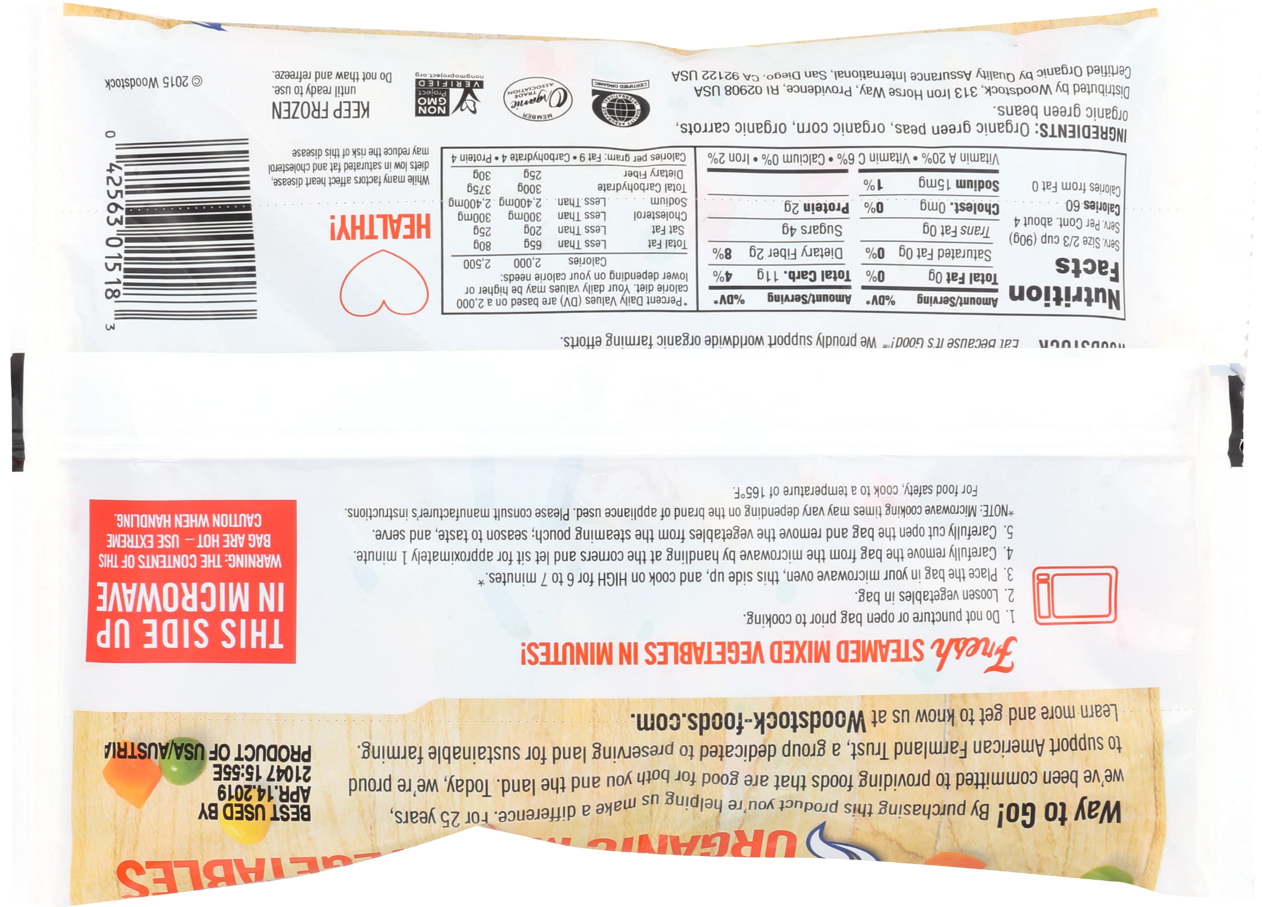 Woodstock Mixed Veg Steamtable Organ. This product contains Natural Ingredients. This product is manufactured in United States. Freezing and Chilling Temperature of the product is frozen: 0 degrees.