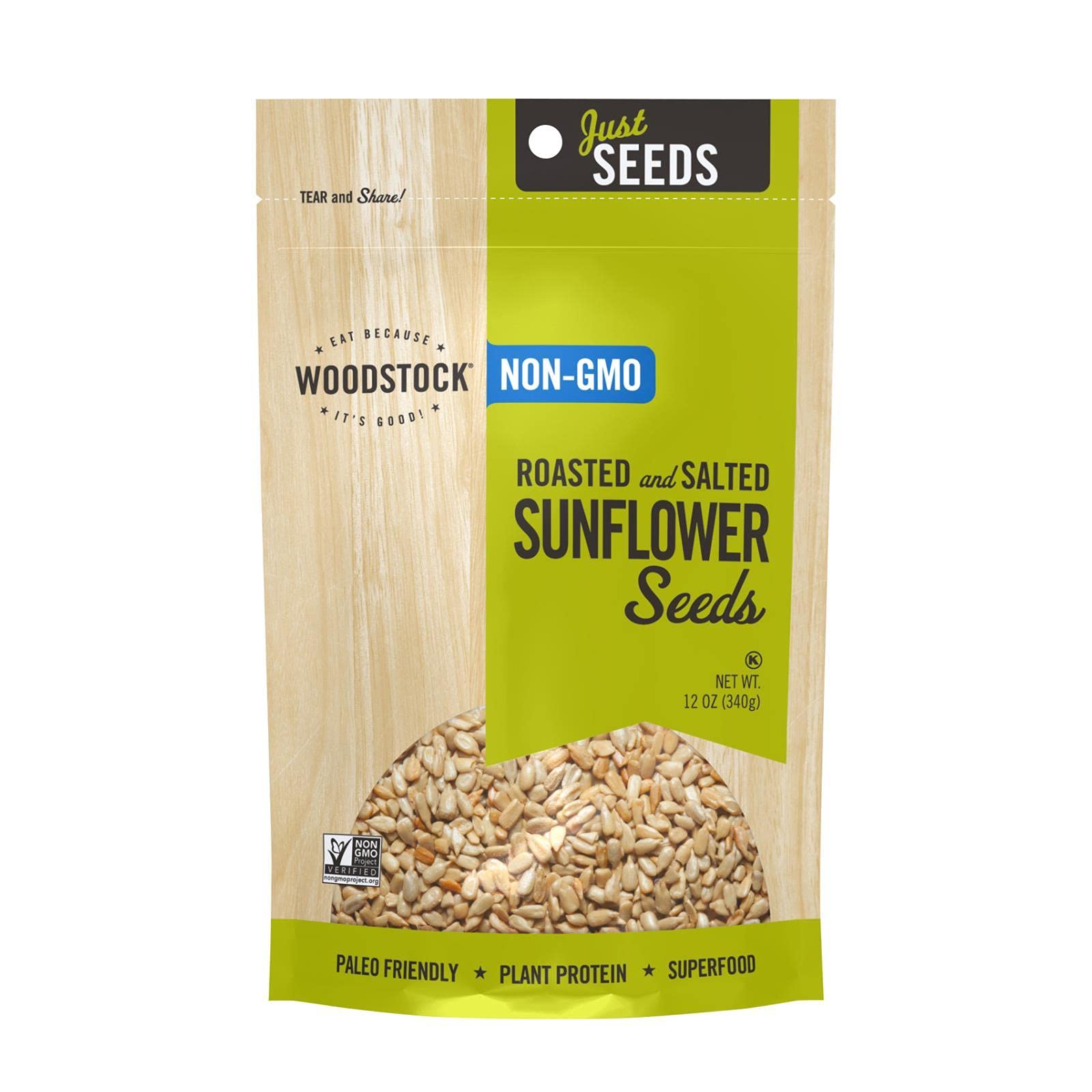 Woodstock Sunflower Seeds - Roasted - Salted - Case of 8 - 12 oz.