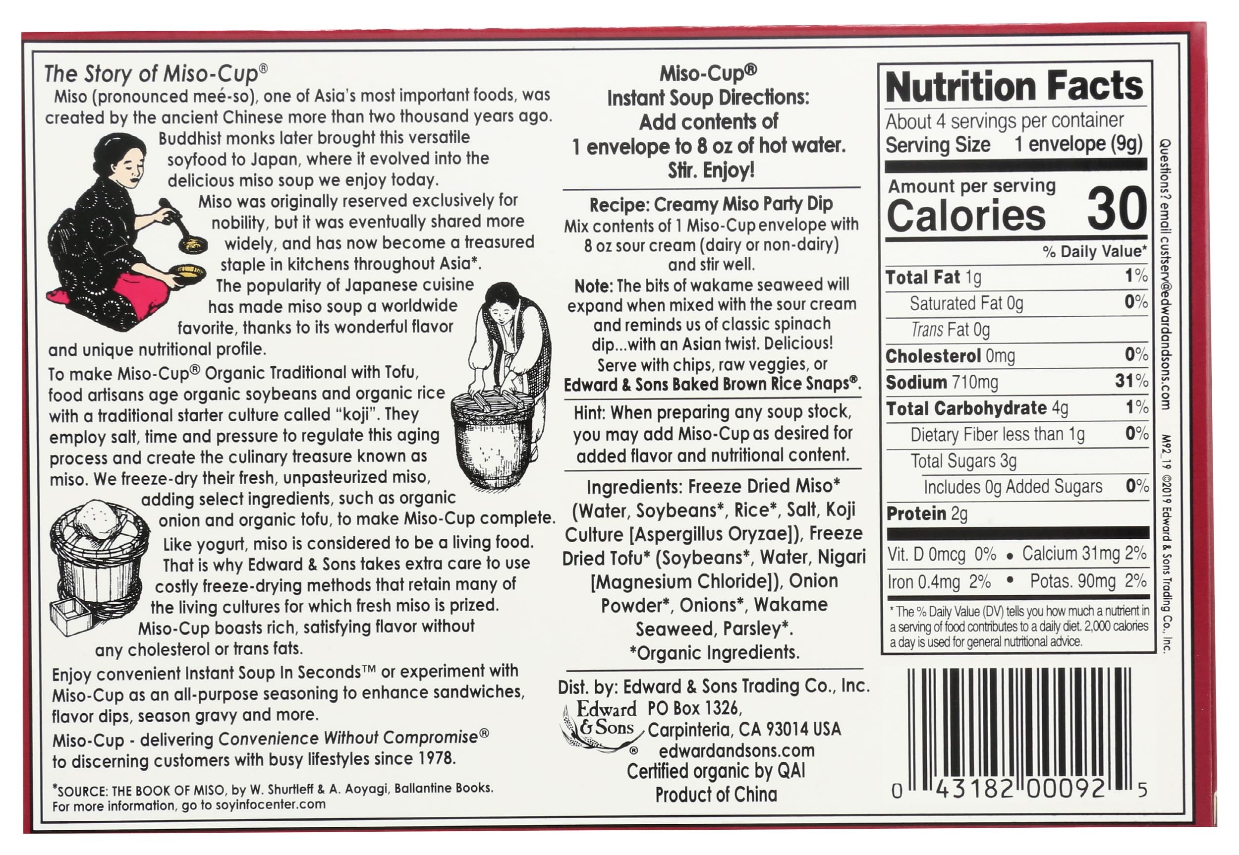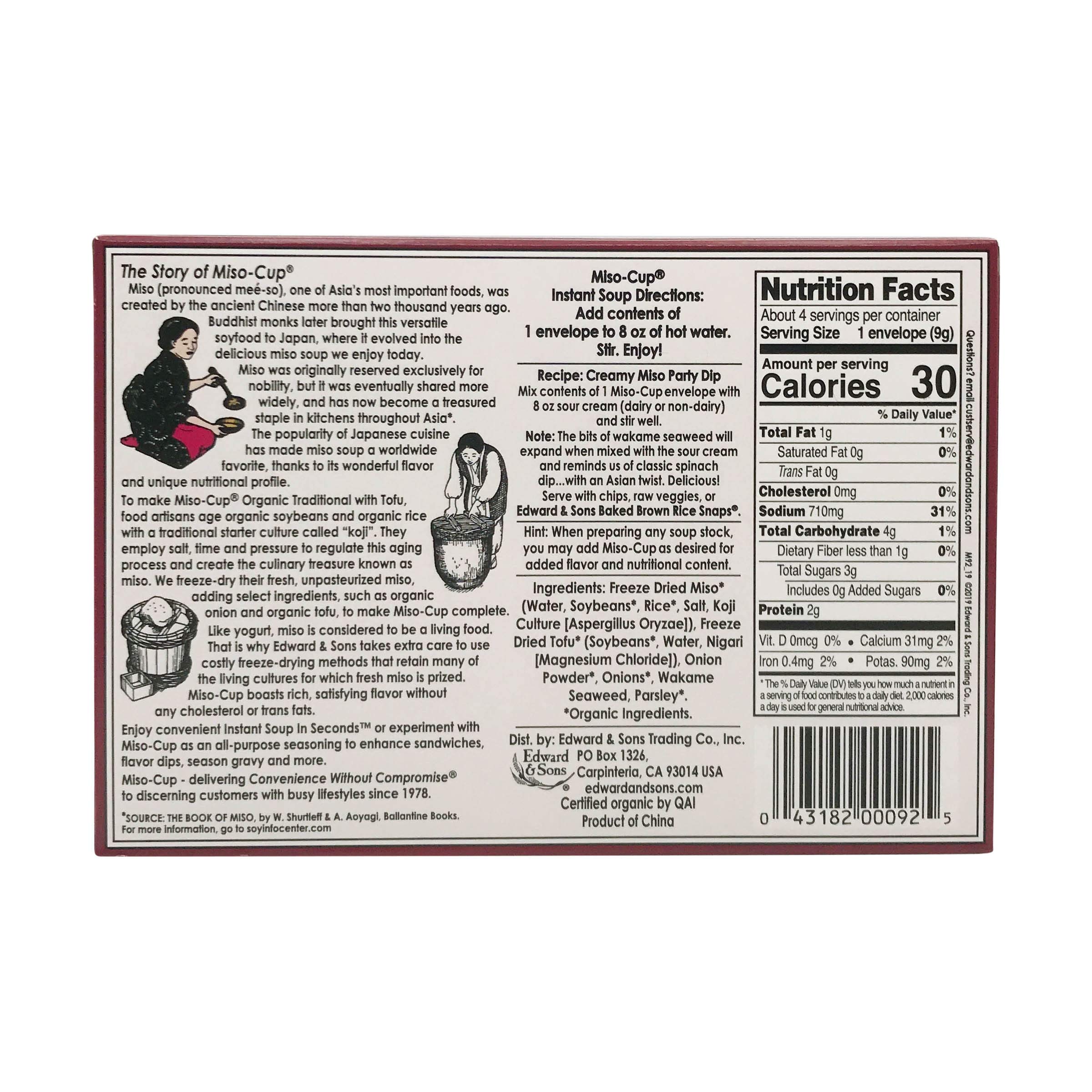 Edward & Sons Organic Traditional Soup with Tofu Miso Cup Instant Soup, 1.3 oz