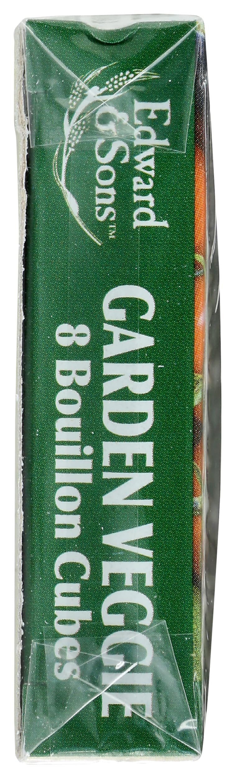 Edward & Sons' Natural Bouillon Cubes make wholesome, satisfying broth in seconds with just hot water. Their rich, full-bodied flavor enhances soups, stews, sauces and more Garden Veggie Cubes Easily prepare this all-purpose vegetable broth to enhance any dish.Features include: Case of twelve, 2.9 Ounce Boxes (total 34.8 ounces/case)Product of Switzerland